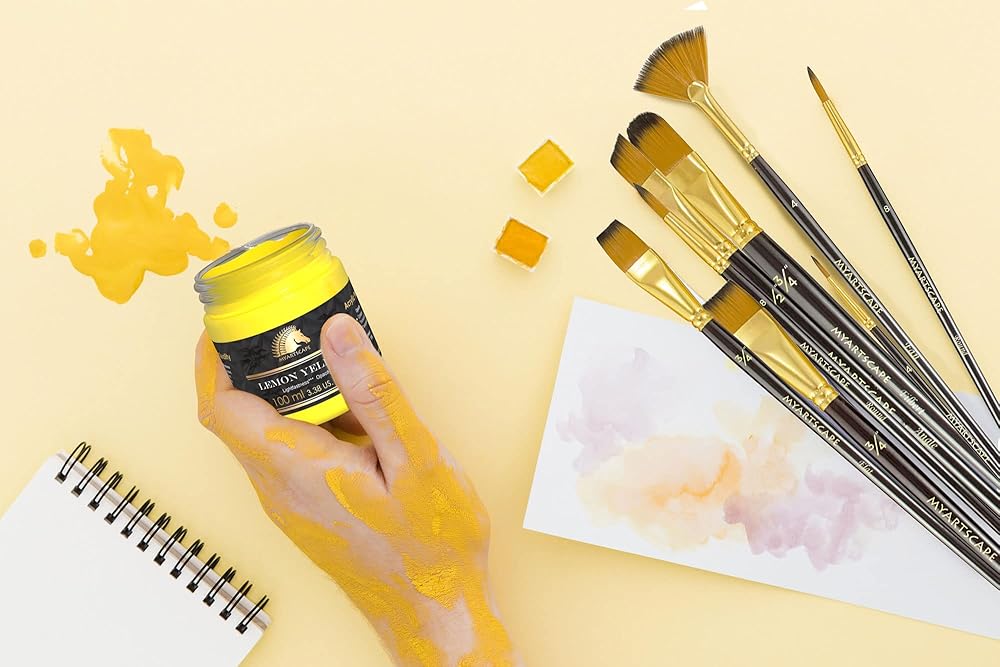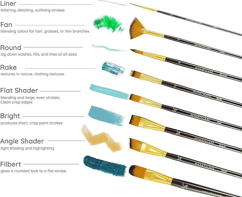 تحتوي مجموعة فرش الطلاء هذه على 8 أنواع فرش فريدة مصنوعة من شعر جولدن تاكلون كوري باهظ الثمن. توفر المزيد من الطلاء، بشكل متساوٍ للحصول على ضربات أطول مقارنة بالفرش الأرخص والأدنى. وهذا يعني وقت أقل للغمس في الطلاء الخاص بك ووقت أطول للرسم سواء كنت ترسم بالأكريليك أو الألوان المائية أو الزيت.