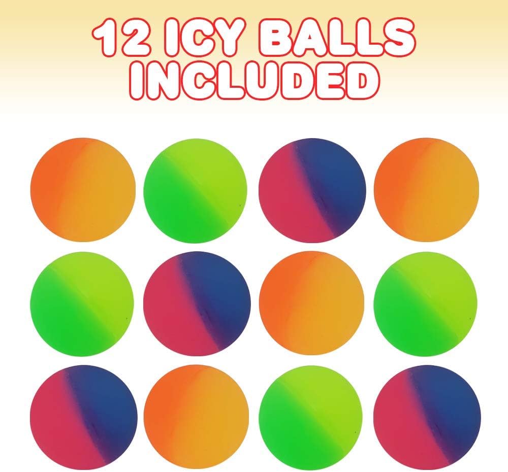 كرات آرت كريتيفيتي آيسي باونسي للأطفال، مجموعة من 12 كرة نطاطة ذات مظهر متموج وارتداد، هدايا حفلات عيد ميلاد فروزن وحقيبة جودي وحشو بيناتا فيلرز، ألوان متنوعة مرحة