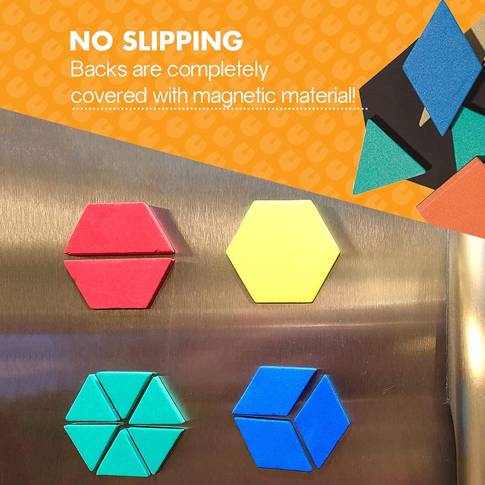 مثالية لتحديد ووصف ومقارنة الأشكال ثنائية الأبعاد؛ استكشاف المفاهيم الهندسية الأخرى وتعلم الألوان واكتشاف الكسور وبناء تصميمات جميلة وغير ذلك الكثير