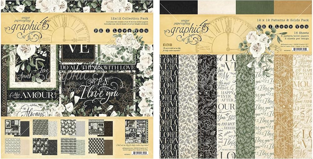 Graphic 45 Collection Bundle - 12 x 12 Collection Pack + 12 x 12 Doublesided Paper Pack Collection Pack: 16 double-sided sheets - 2 each of 8 designs and two unique 6 x 12 inch sticker sheets - Cover-weight stickers are acid and lignin free
