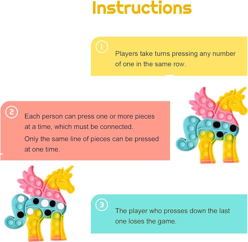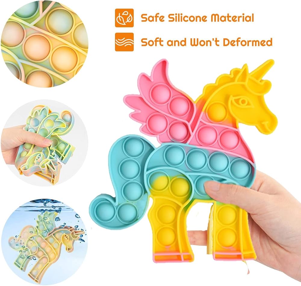 • ألعاب يونيكورن بابل فيدجيت بوب - الألوان الرائعة وفقاعات يونيكورن اللطيفة ستجذب انتباه أطفالك. يمكن لمجموعة ألعاب فيدجيت بالضغط على السيليكون هذه أن تمارس التفكير الرياضي للأطفال، واستراتيجية التفكير، والحساب الذهني، والتفكير المنطقي، والقدرة على التخطيط الشامل.
