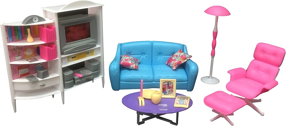 The gloria family room play set. The buyer will receive exactly as pictures that list in above The furniture, play set is for dollhouse and fit to play with 11 1/2" Size Dolls . Dolls Are Not Include The toy is recommended for the children 3 – 12 years. Needs Easy Assemble
