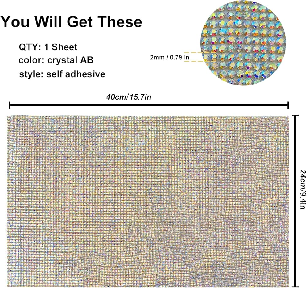 You Will Get a 9.45x15.75 Inch Self-adhesive Sheet , Color Crystal AB.With Reel Packaging, You Will Get a Stretch Diamond Sticker, Which Will Not Wrinkle and Affect Your Use