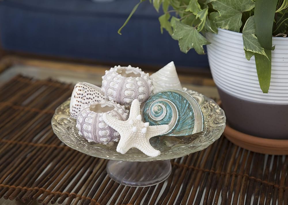 تحتوي هذه المجموعة الجميلة على 5 أصداف إجمالية. واحد من كل مما يلي: توربو أخضر وأبيض لؤلؤي، نجم البحر نوبي، قنفذ البحر سبوتنيك، منقط كونوس بحروف، تروشوس مدبب لؤلؤي