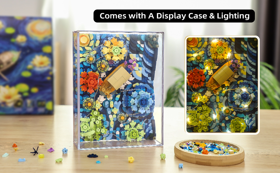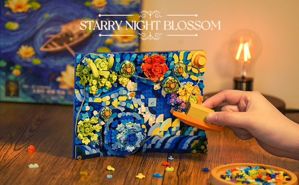 🌃مجموعة فان جوخ الليلية المرصعة بالنجوم - مجموعة البناء الفنية الصغيرة هذه مستوحاة من ليلة النجوم والزهور. لدمج روح فنسنت فان جوخ مع المشاعر الرومانسية المعاصرة. أعد خلق الجمال الخالد مع مجموعة بناء الزهور للأطفال والكبار.