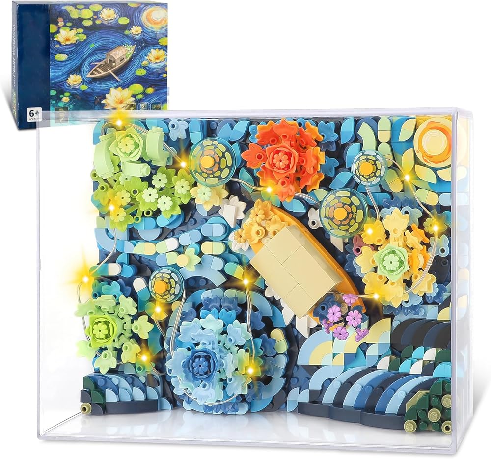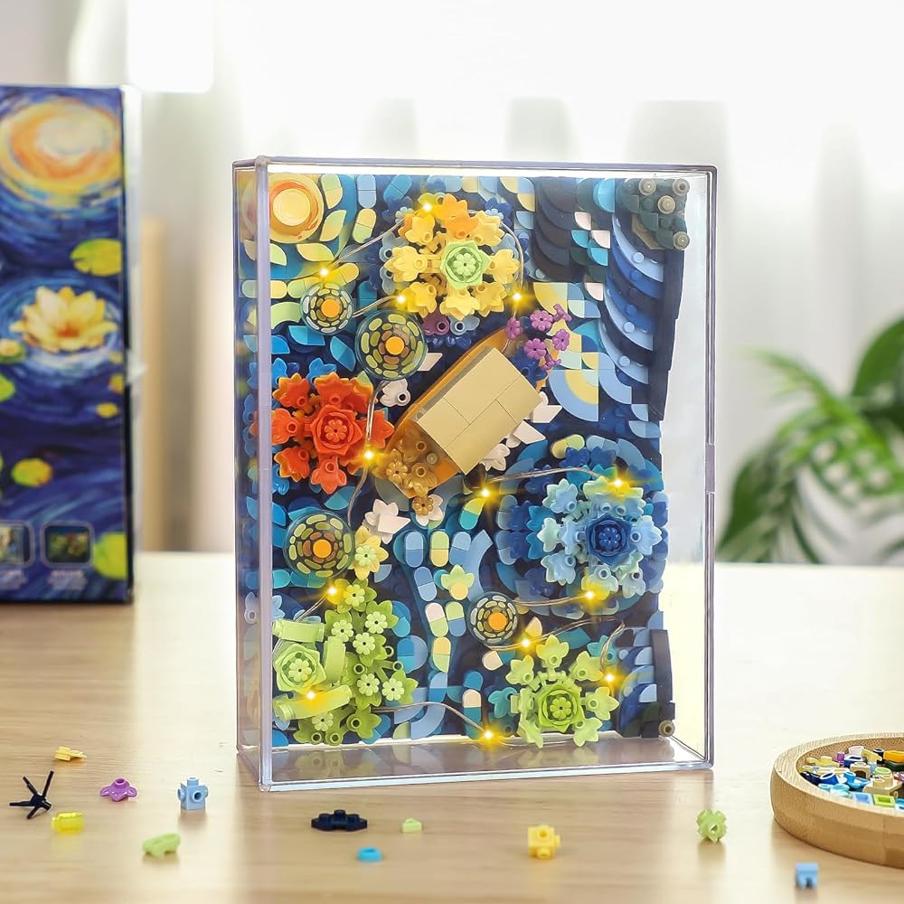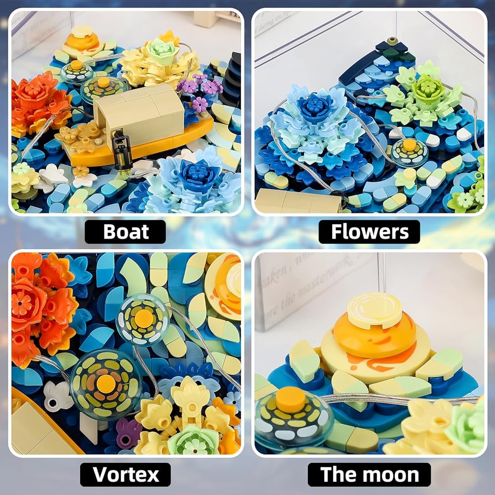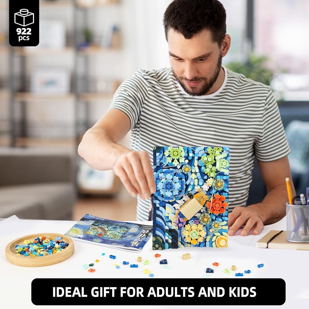 مكعبات بناء صغيرة من آيدياز ذا ستاري نايت فلاورز للبالغين، مجموعة بناء فنسنت فان جوخ مع الإضاءة، غير متوافقة مع ليغو، عرض فني لديكور المنزل، ألعاب هدايا إبداعية للأطفال (922 قطعة)