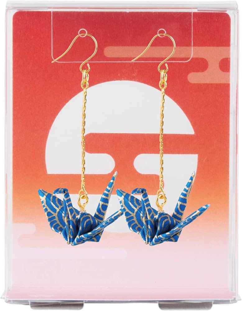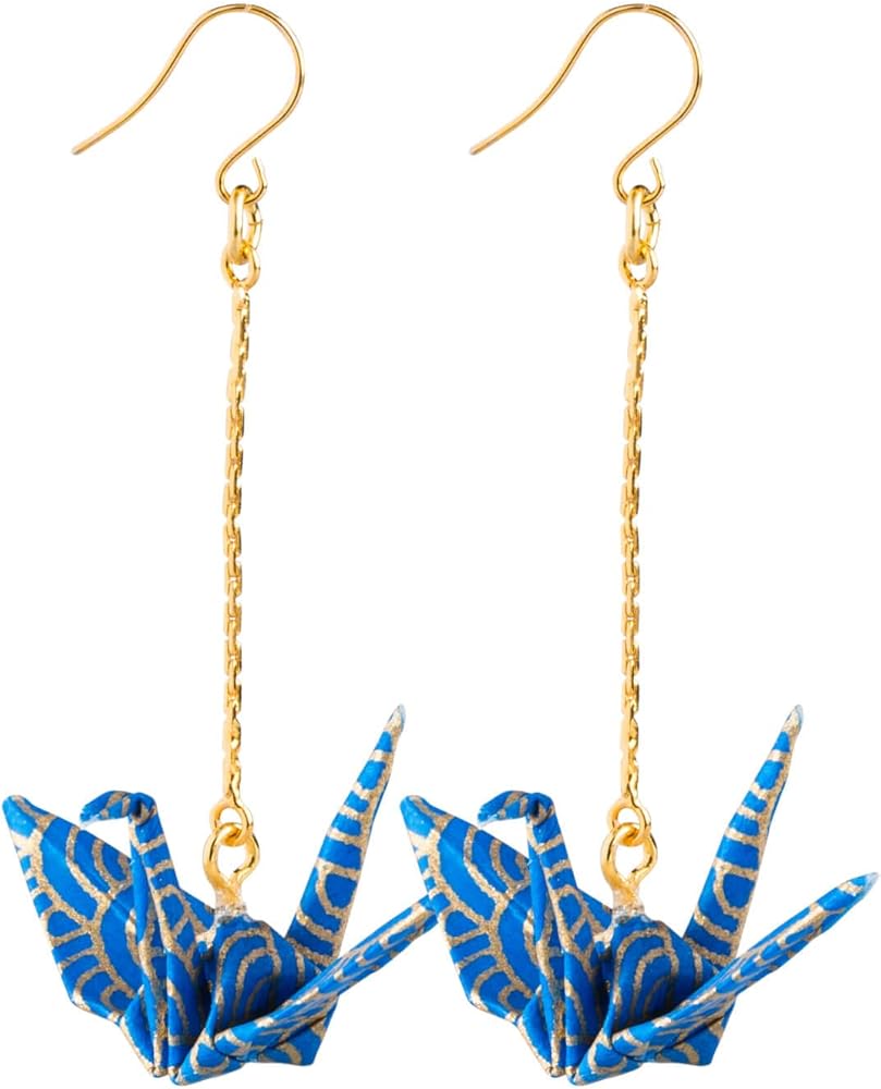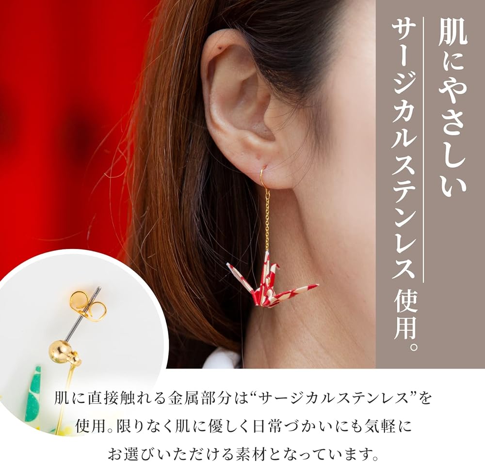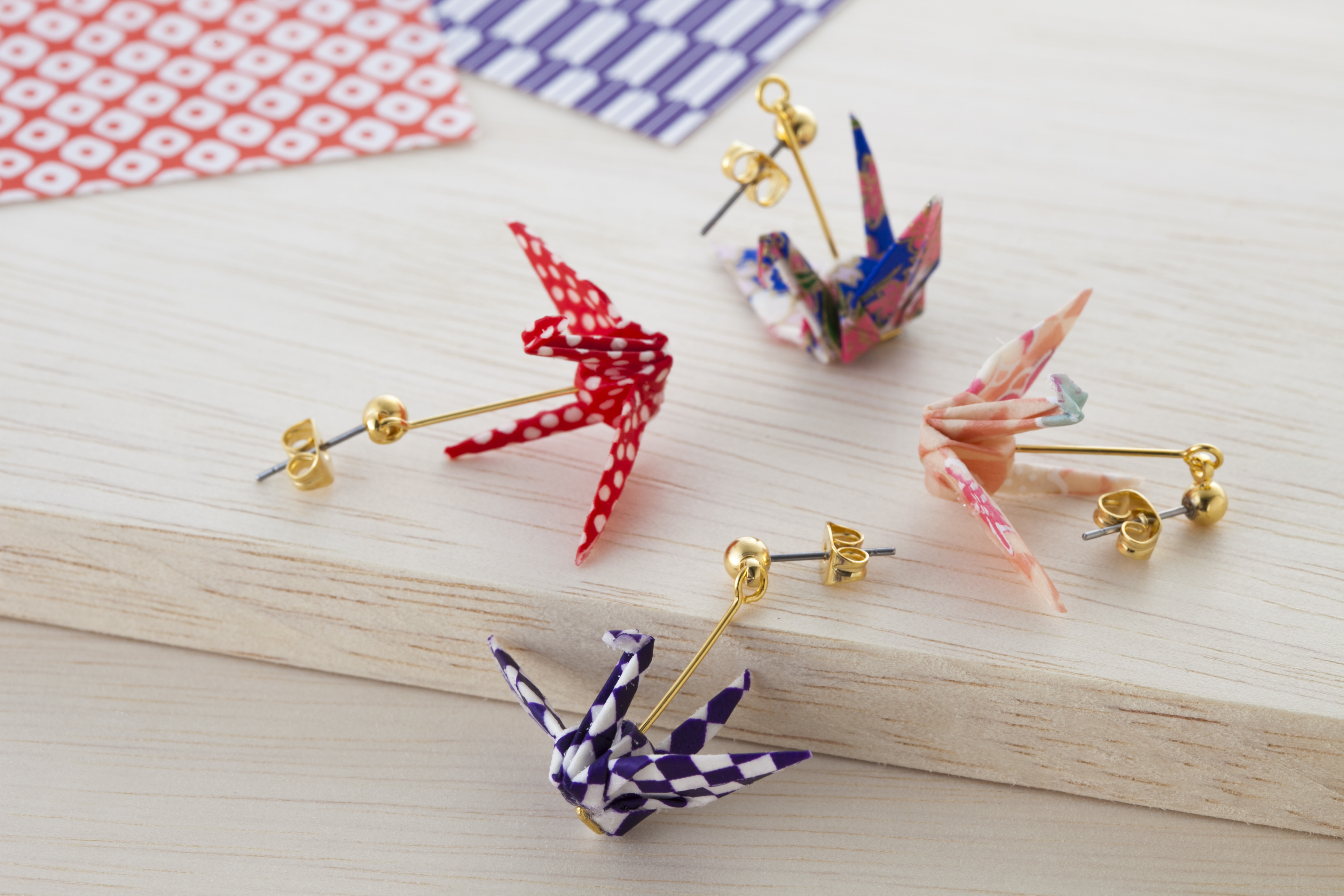 Origami crane earrings that are carefully folded by craftsmen one by one.