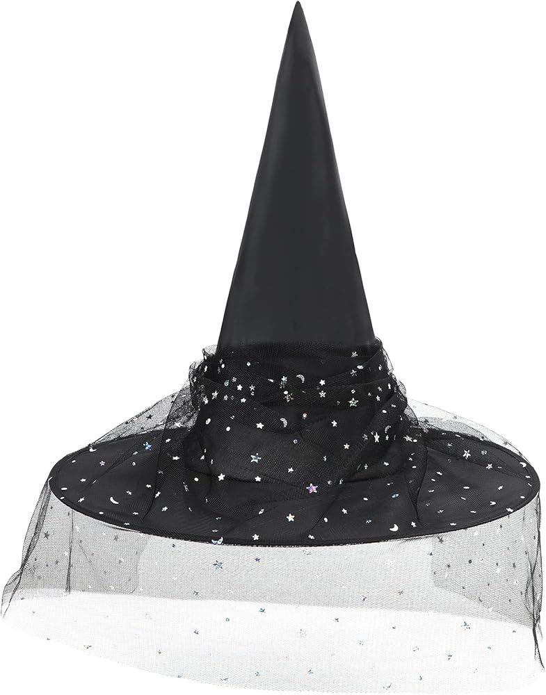 قبعة ساحرة للسيدات عالية الجودة: قبعة ساحرة الهالوين مصنوعة من البوليستر الفاخر، وسلك من خليط معدني ودانتيل، ناعمة وخفيفة الوزن ومتينة وليس من السهل كسرها. عندما تفتح قبعة الساحرة، ستتحول إلى شكل وتثبته دون القلق بشأن التشوه بسبب التخزين.