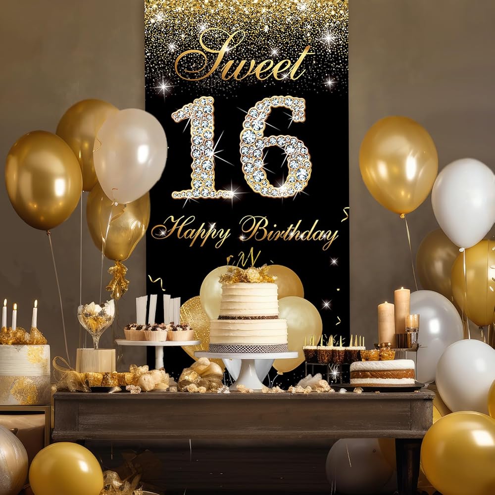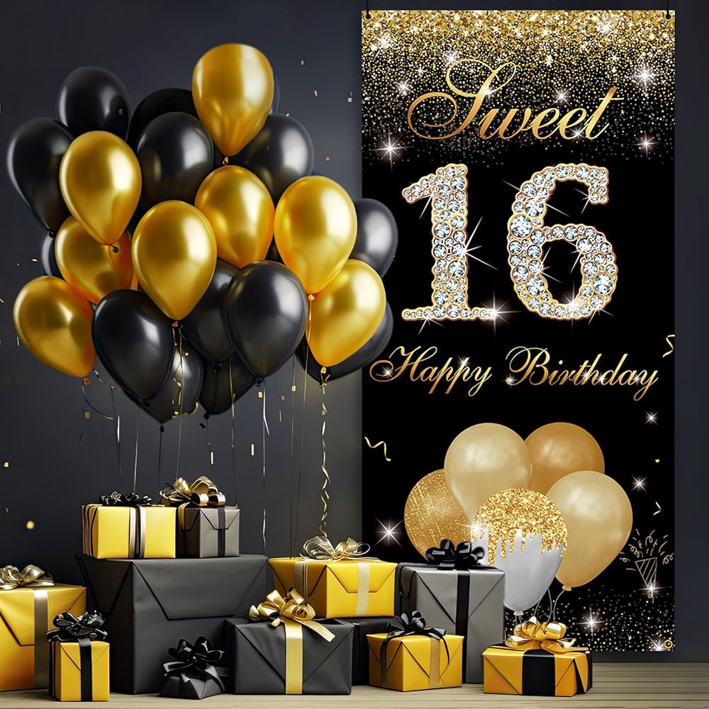 مثالية لحفلات أعياد الميلاد السادس عشر ذات الطابع الذهبي الأسود