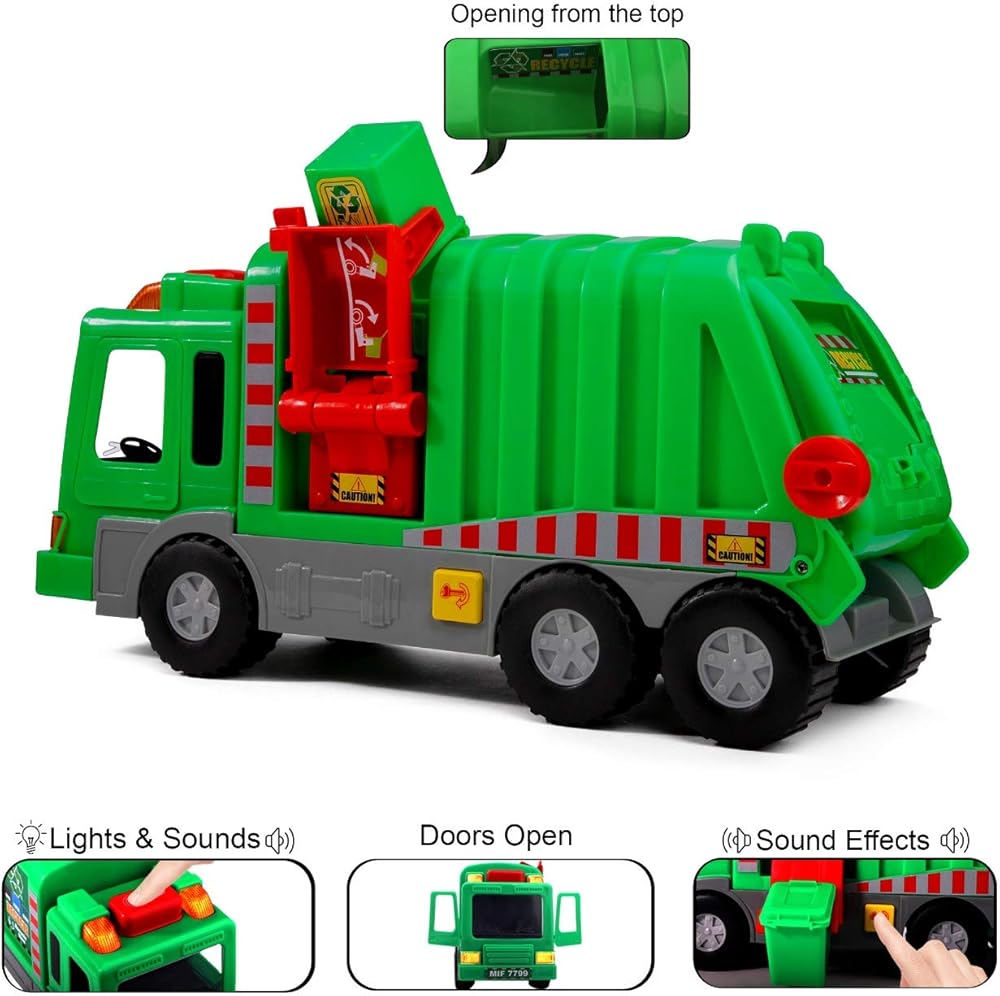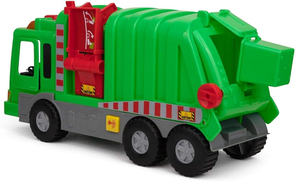ضاغط القمامة اليدوي: تم تصميم كل شاحنة تفريغ مع رافعة قمامة يمكنها تحريكها يدويًا لإضافة القمامة أو الألعاب الأخرى لنقلها كما لو أنها تلتقط القمامة الحقيقية. سيحبون التقاط الأشياء وإسقاطها في جميع أنحاء غرف نومهم أو منطقة اللعب الخارجية