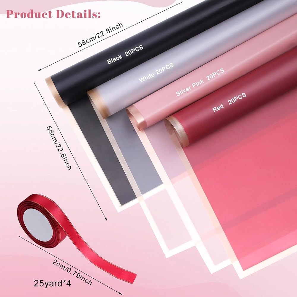 • Wrapping Paper Set: You will get 80 sheets of flower wrapping paper in 4 different colors, 40 sheets of each color, and come with 4 rolls ribbons of in different colors, enough for your daily use and different packaging needs.
