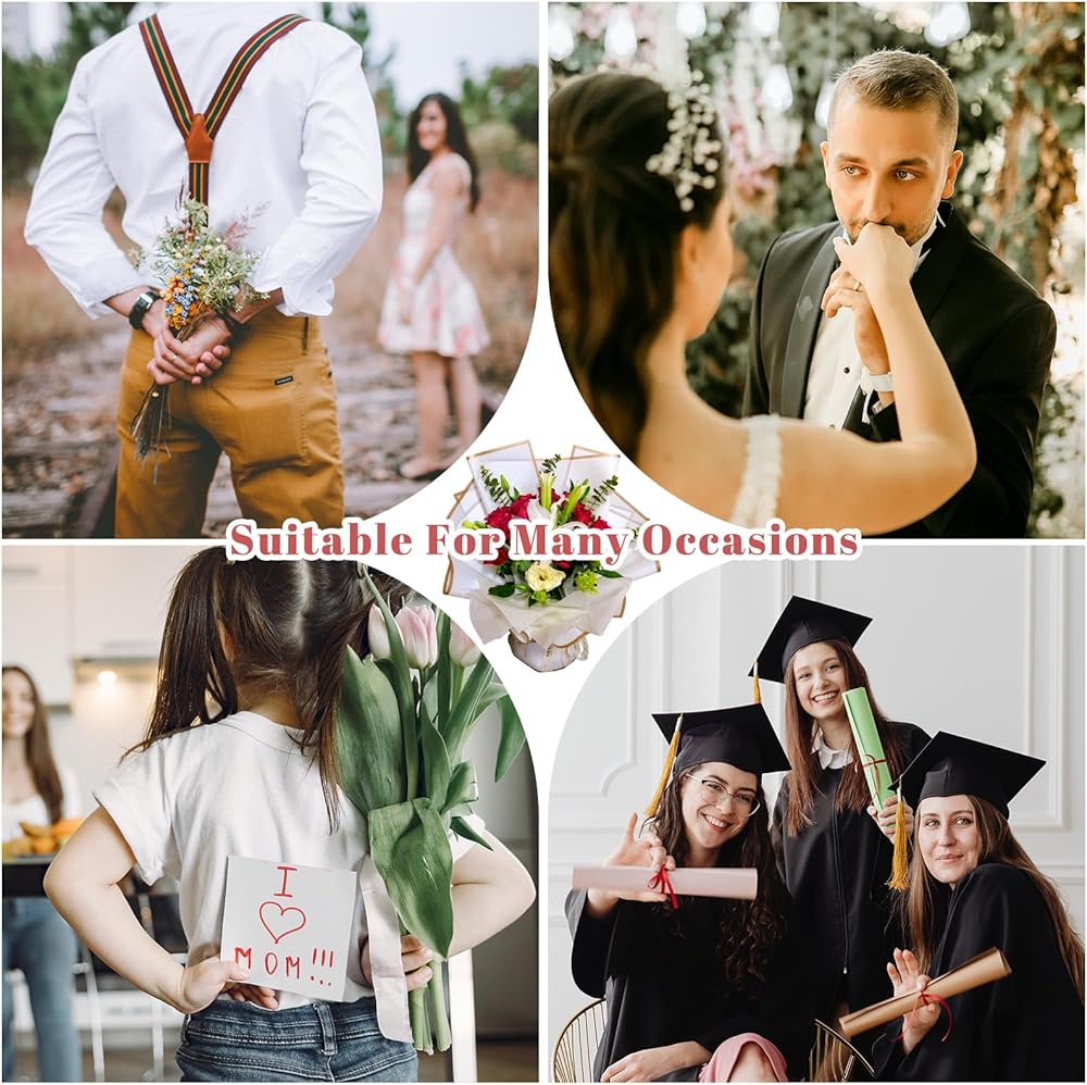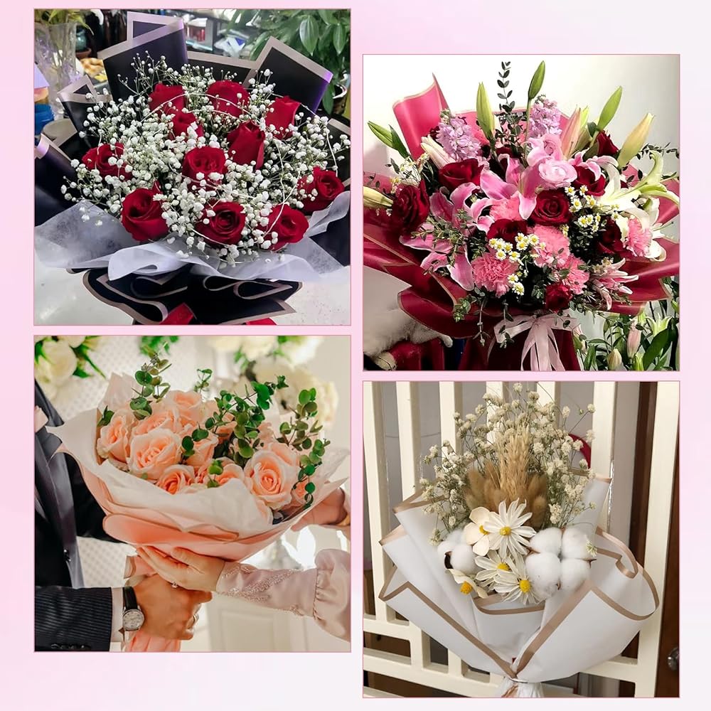 • Widely Applicable: These florist bouquet supplies are suitable for birthdays, weddings, anniversaries, holidays, graduations, Valentine's Day, Mother's Day, Thanksgiving, baby showers, bridal shower, etc., and flower wrapping, gift wrapping, DIY craft projects, etc., to add a romantic atmosphere.