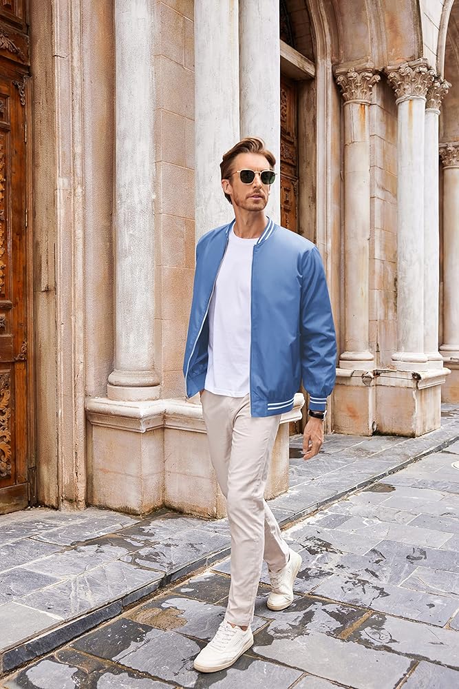【أزياء الشارع】هذه السترة خفيفة الوزن هي ملابس متعددة الاستخدامات توفر الراحة والدفء والأناقة، وهي رائعة للربيع والخريف والشتاء، ويمكن ارتداؤها لأزياء الشارع أو الترفيه طوال اليوم. ارتدي سترة بومبر فوق سترة بسيطة تي شيرت أبيض، جينز بقصة ضيقة، وأحذية سهلة الارتداء لأسلوب كلاسيكي. يمكنك أيضًا إقران السترة مع سترة ذات لون سادة، وكاكي، وحذاء رياضي أبيض لإضفاء انطباعٍ مميز.