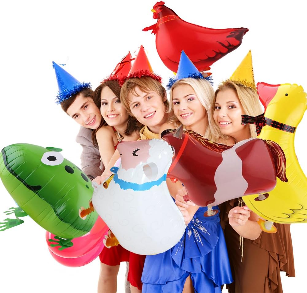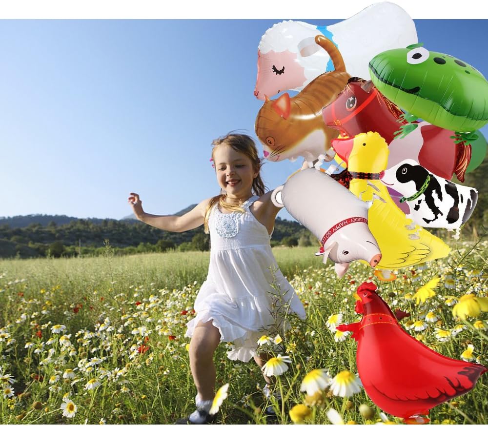 حول المقاس: مقاس بالونات حيوانات المزرعة 16 انش - 25 انش حسب الشكل. الشريط متضمن.
