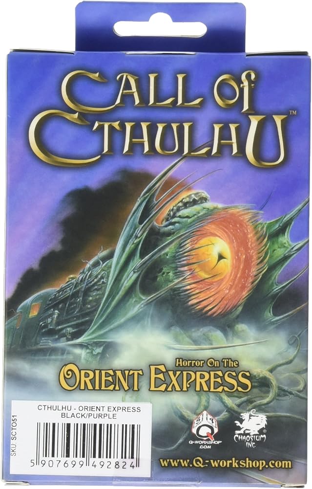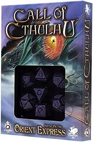 مجموعة النرد السمني متعدد السطوح 7 النرد المنحوت (كوك) النرد الأسود والأرجواني - الرعب على مجموعة Orient express تحتوي على 7 نرد متعدد السطوح غير عادي، والتي سوف تساعدك على أخذك إلى هذه الرحلة الخاصة. ابحث عن مجموعات النرد الأخرى من Cthulhu .