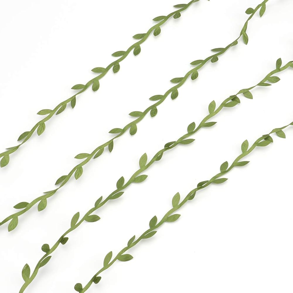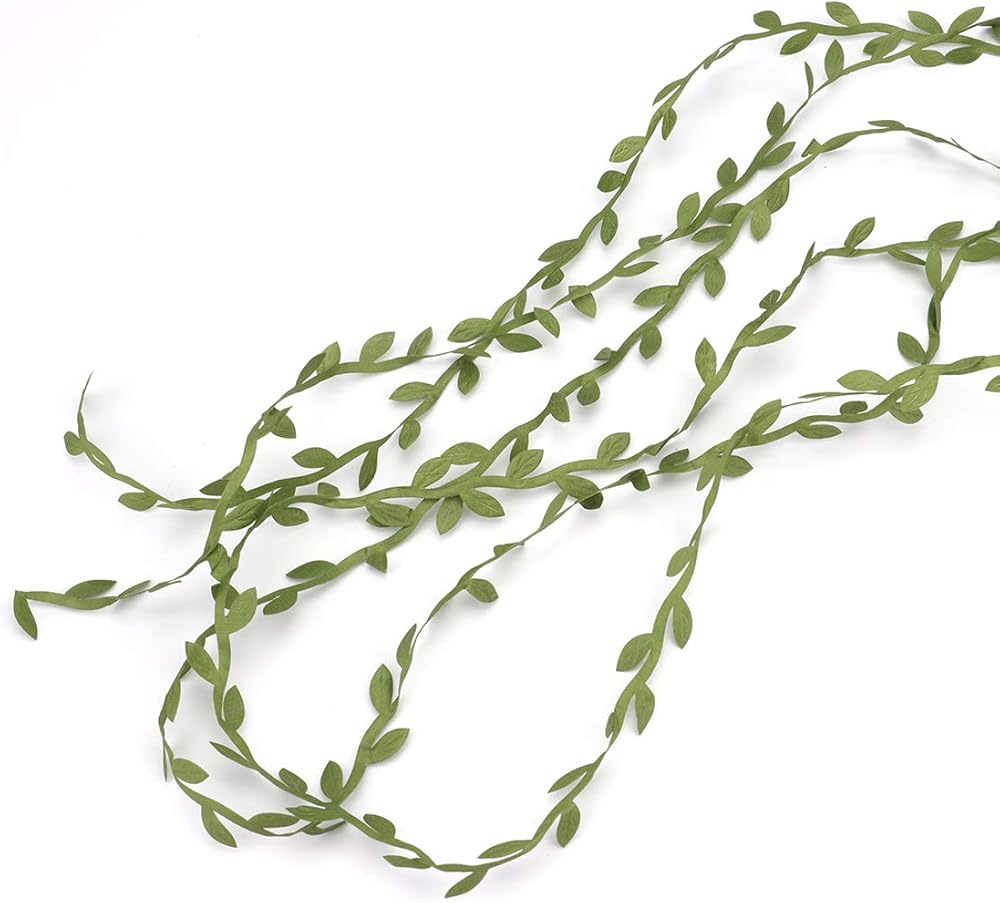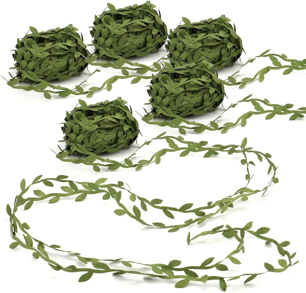 • عبوة من 5 لفات من شريط أوراق الزيتون الخضراء / الكرمة الصناعية، 21.88 ياردة/20 متر لكل لفة، إجمالي 109.36 ياردة/100 متر.