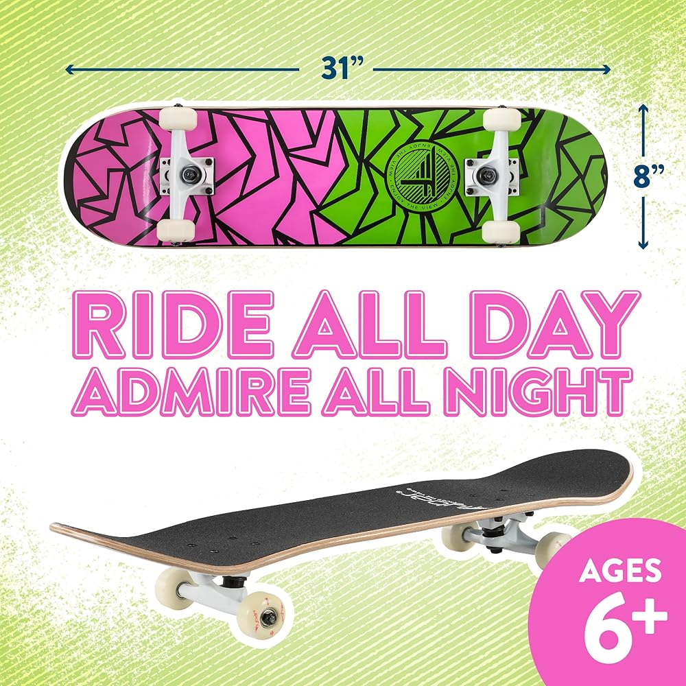 • Durable but lightweight 7-ply quality maple wood construction: Don't worry about putting all the parts together, we've done that for you. Complete skateboard ready to ride right out of the box.
