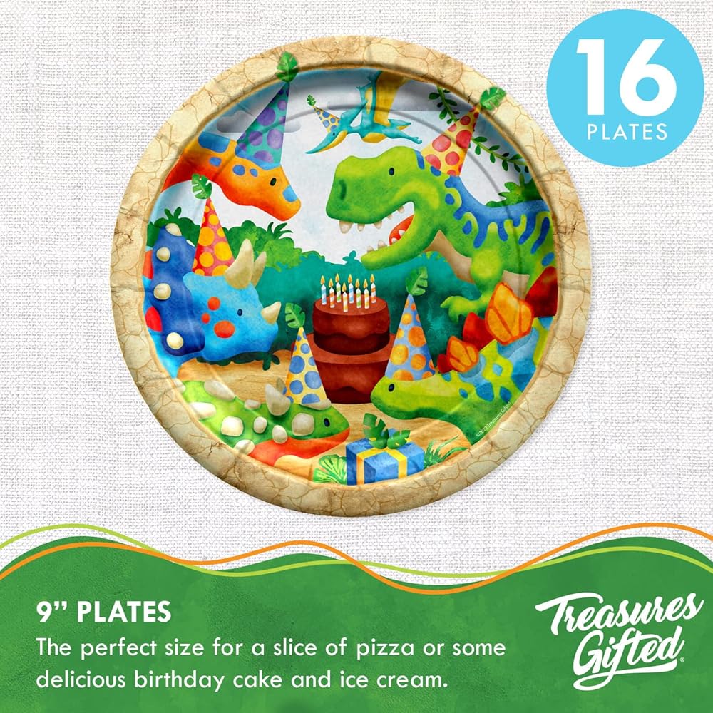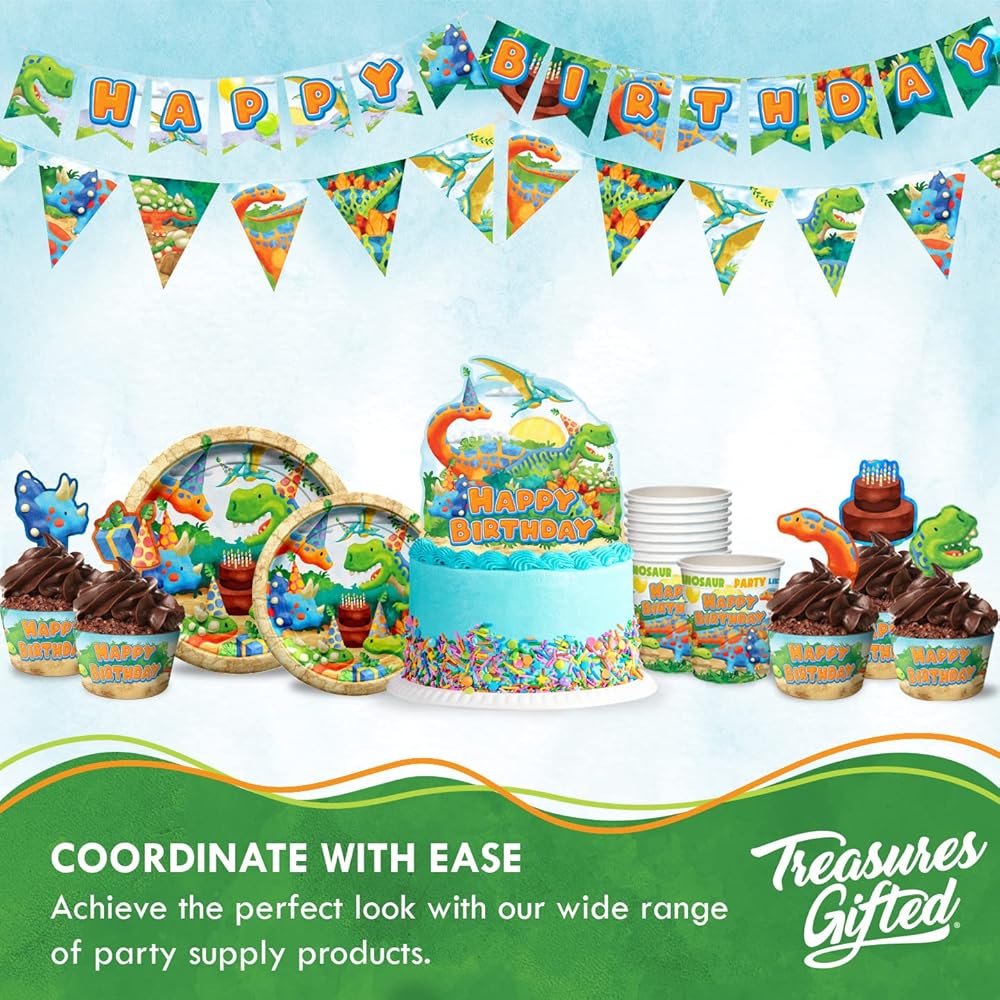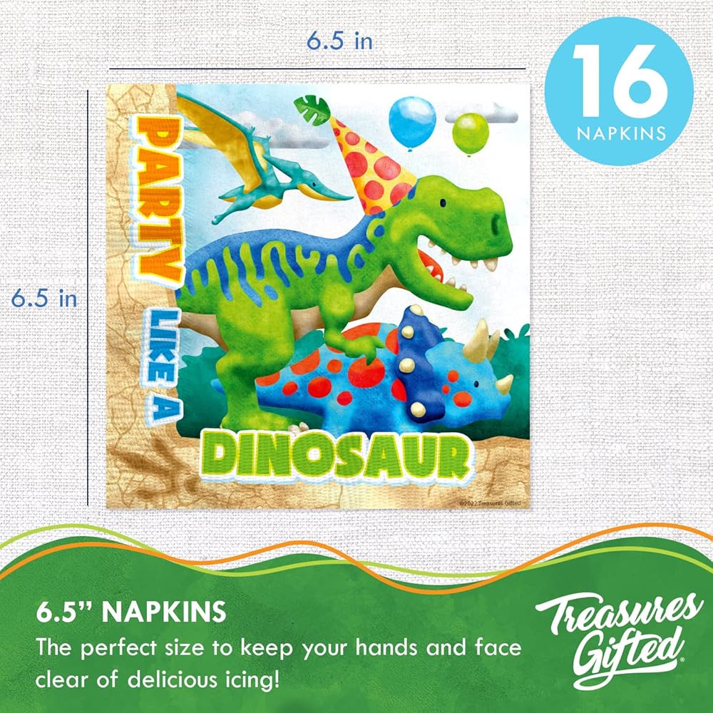 احصل على المزيد من لوازم الحفلات التي تحمل طابع الديناصورات وديكورات الحفلات الأخرى! قم بزيارة متجر Treasures Gifted Amazon للحصول على المزيد من المنتجات مثل بالونات حفلات الديناصورات، ولافتات عيد ميلاد الديناصورات، وخلفية الديناصورات، وغيرها من ديكورات الحفلات التي تحمل طابع الديناصورات!