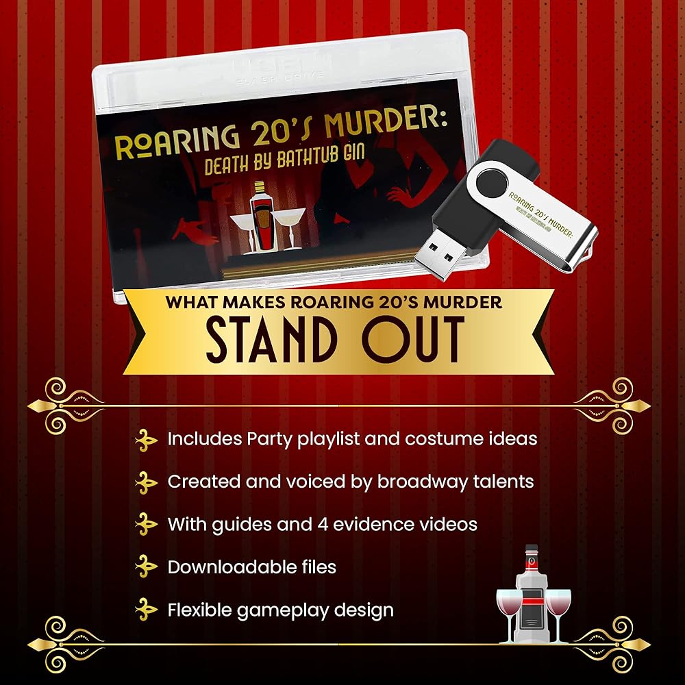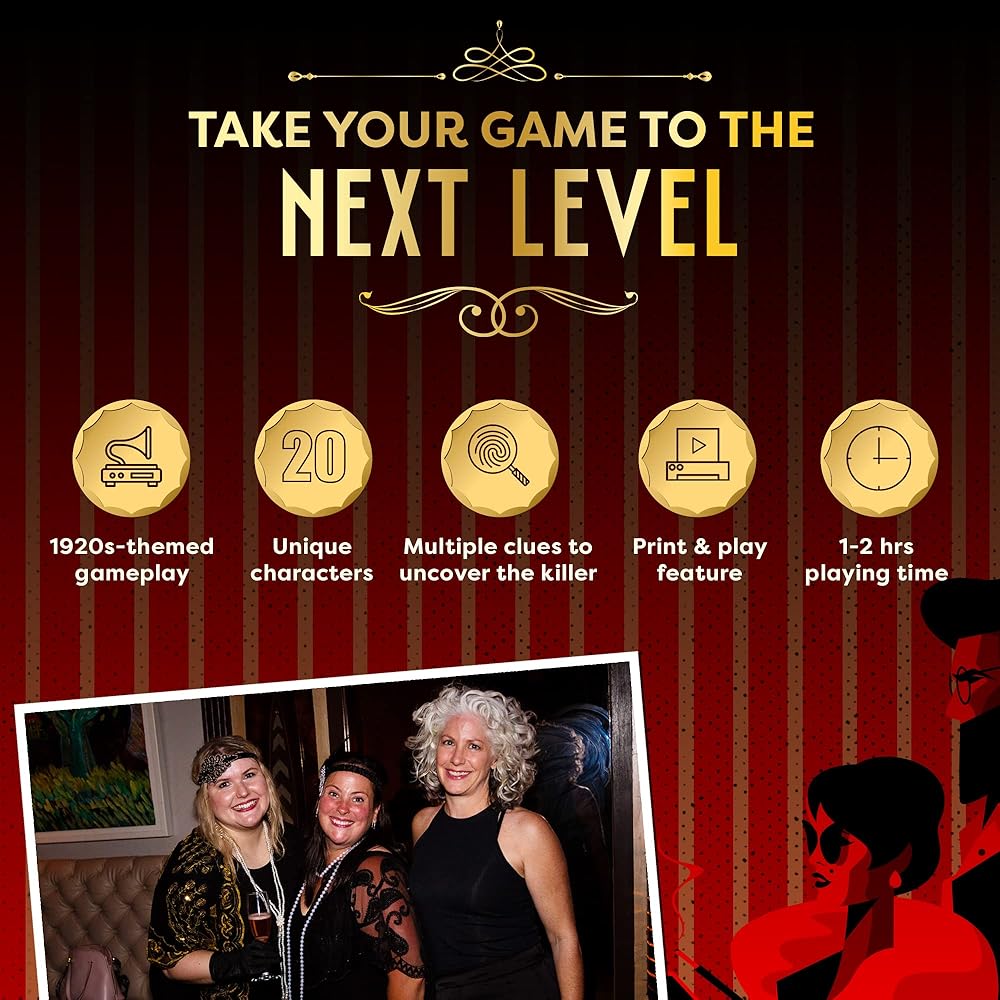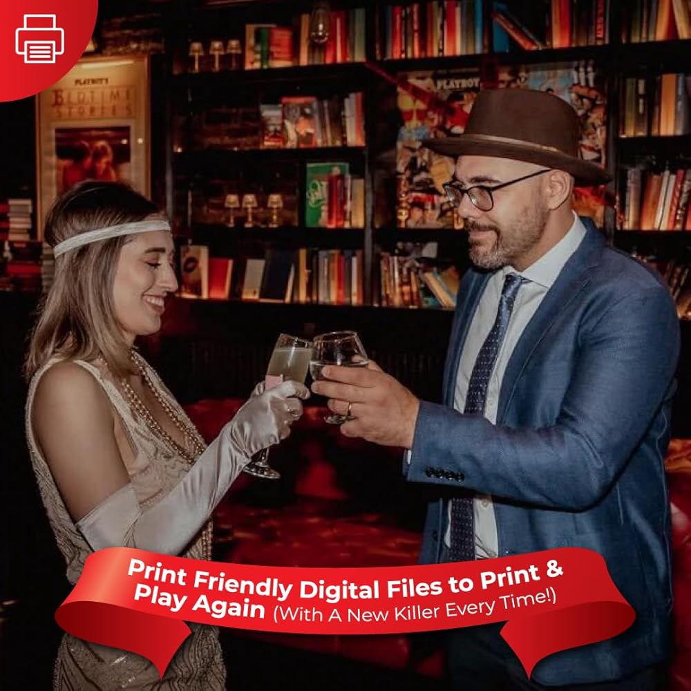 لعبة لغز القتل التفاعلية - المهرب الشهير السبوموني مسموم في خبز عيد ميلاده! تدور أحداثها في العشرينات الصاخبة، ستبقيك أنت وأصدقائك على أصابع قدميك مع ساعات مثيرة من جنون القتل الغامض!
