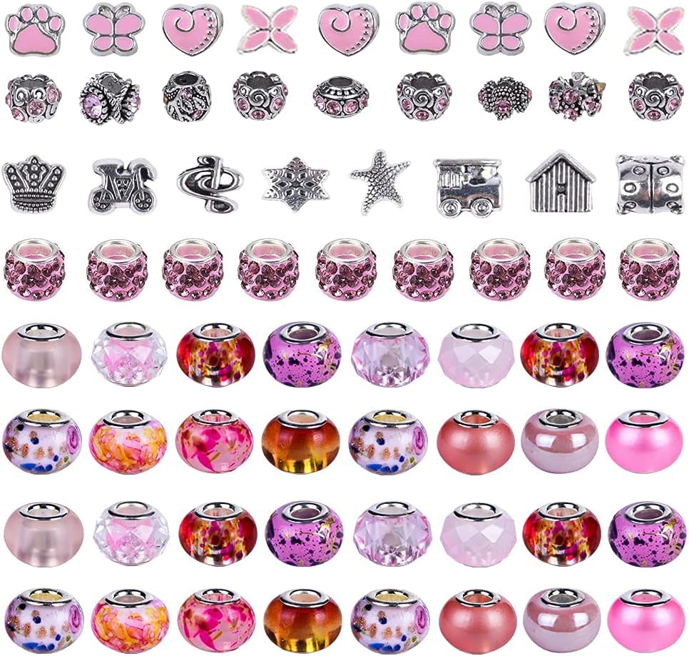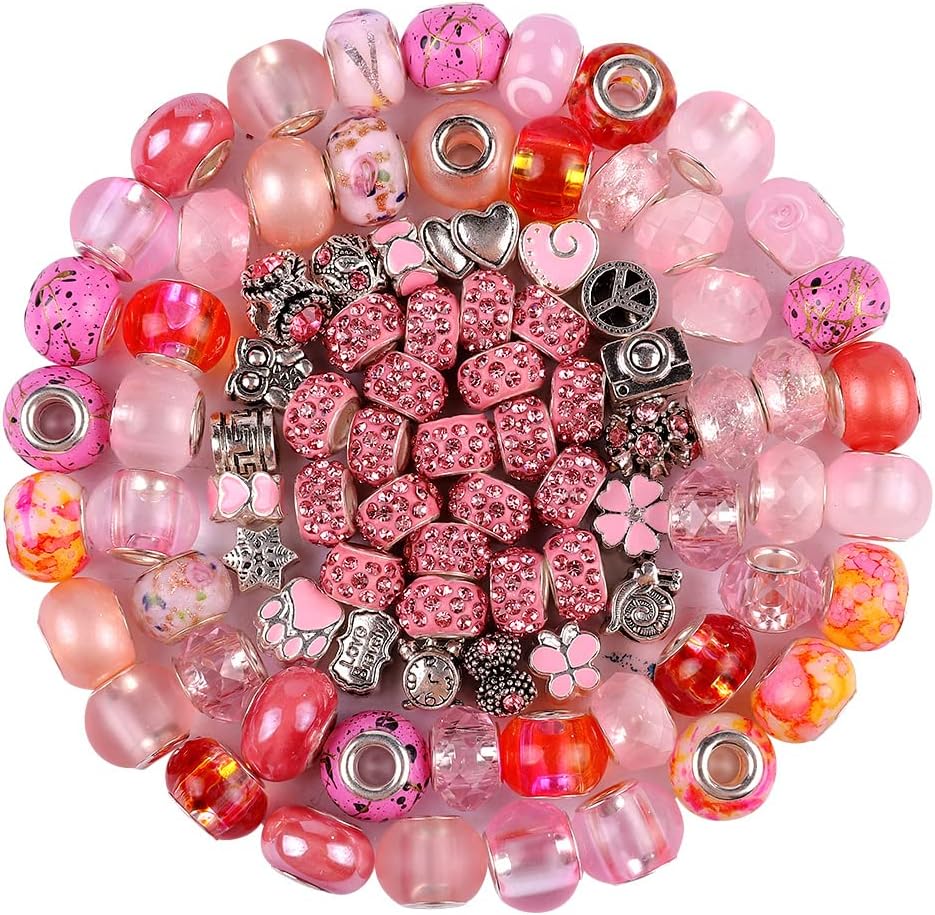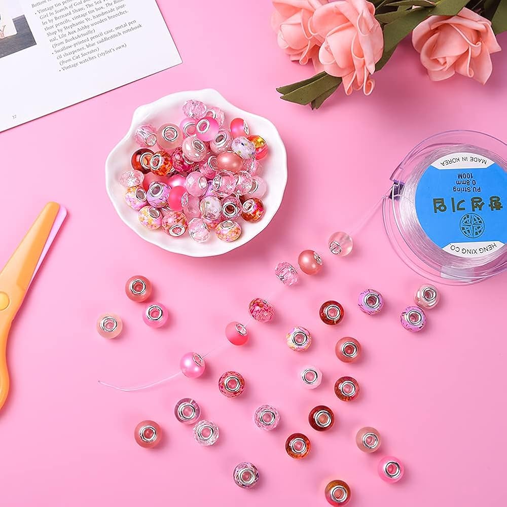 Select 10 diffrent color large hole beads, each color more than 10 style 10 Pieces,add 24 pieces rhinestone European beads total 124 Pieces;
