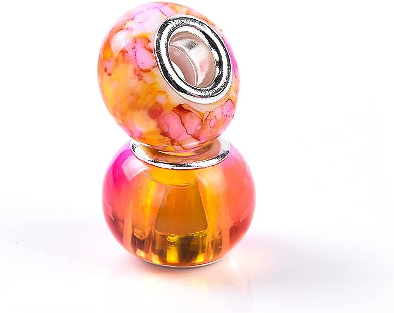It is made from a mix of silica and chemical compounds that slow the solidification process. As this mixture is heated to very high temperatures, it liquefies, allowing the master to work the glass. The glass is then cooled down, resulting in the creation of colored glass rods. Decorated with perfectly formed patterns made by hand, Murano glass charm is set on a plating silver core. Each piece is unique and finished with multiple layers of transparent glass.