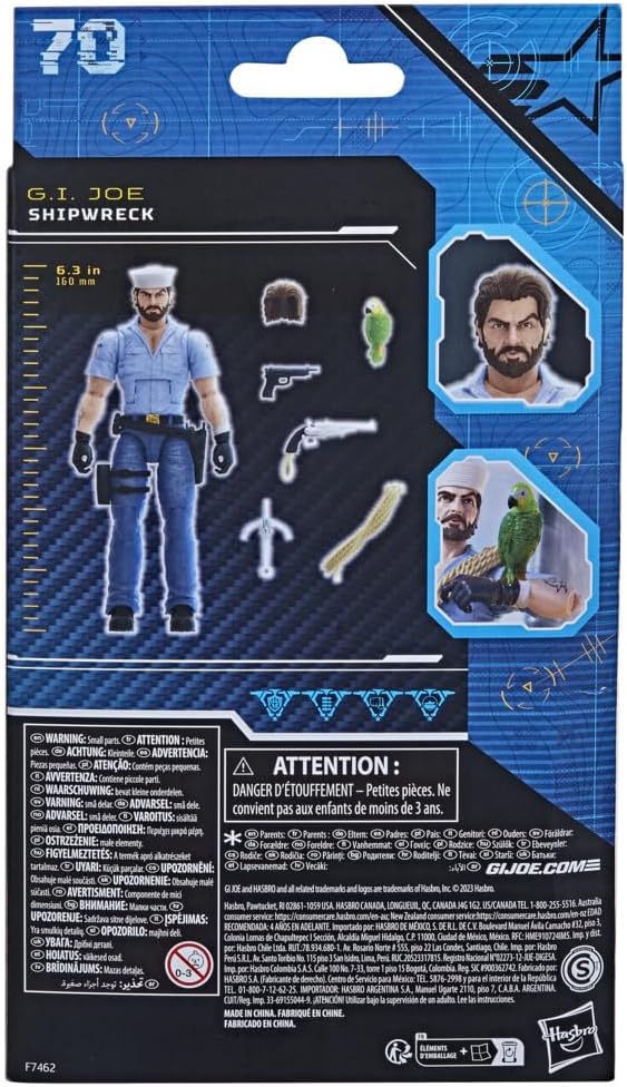 جي.اي. جو هي قوة عمليات خاصة ذات مهارات عالية عند الطلب من الرجال والنساء من جميع أنحاء العالم. مكلفة بالدفاع عن العالم من كوبرا، وهي منظمة إجرامية لا ترحم مصممة على الهيمنة الكاملة. الأعضاء الشجعان في جي اي. جو مستعد للبحث عن كوبرا في أي بيئة على الكوكب. من الأدغال المعادية إلى قمم القطب الشمالي المكسوة بالجليد... أينما كانت هناك مشكلة، جي اي جو موجود. جديد في جي اي. يأتي خط سلسلة جو المصنف جاهزاً للمغامرة، مع نقاط مفصلية متعددة من أجل قابلية عالية لاتخاذ وضعيات عالية. يحتوي مجسم حطام السفينة هذا على 6 ملحقات مستوحاة من الشخصيات بما في ذلك ببغاءه المخلص "بولي" وحبل ملفوف وخطاف تصارع وإكسسوارات أسلحة وشعر قابل للإزالة لتبديل غطاء كوب ديكسي المميز؛ بالإضافة إلى خزانة قدم لتخزين جميع معداته! سواء كنت تقوم بمسح السطح أو التسلل إلى المشاريع الواسعة فإن حطام السفينة على شكل سفينة حتى آخر التفاصيل. جي.اي. جو وجميع الشخصيات ذات الصلة هي علامات تجارية لشركة هاسبرو.