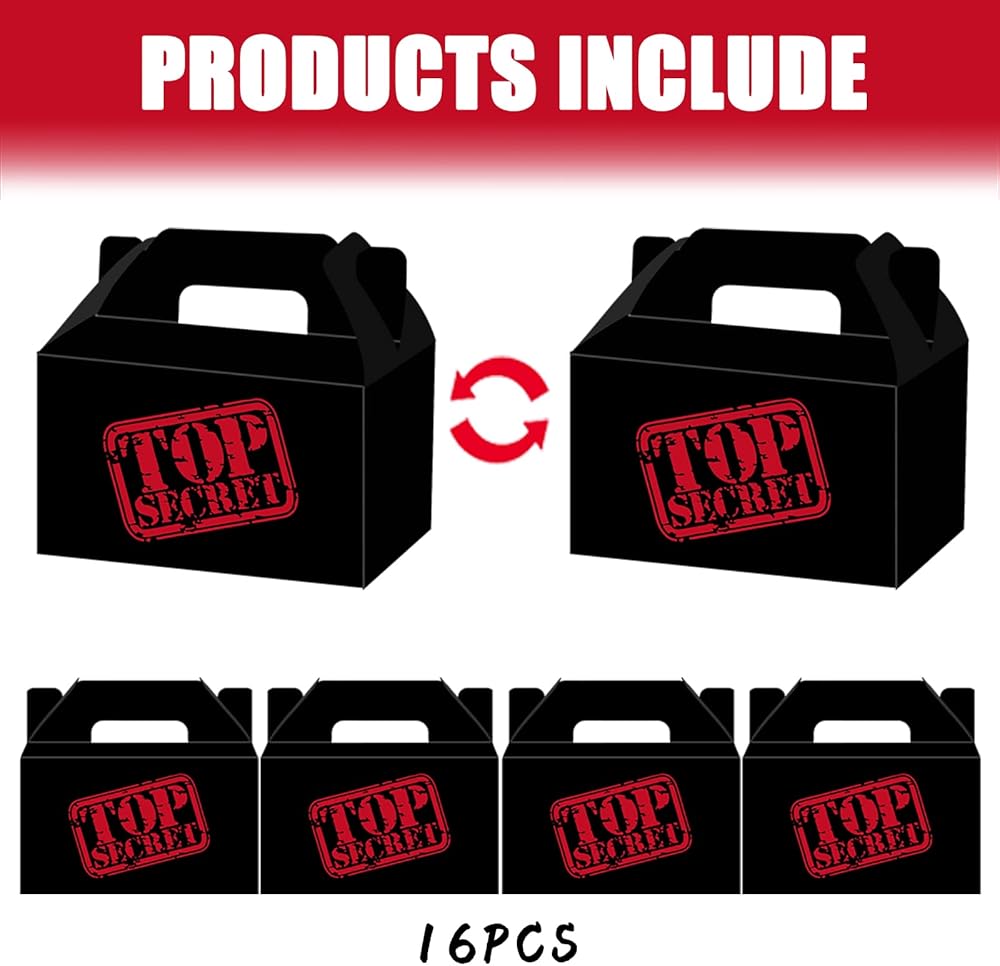 16 قطعة من صناديق الحفلات ذات الطوابع السرية للغاية، يوفر كل تصميم سري مختلف ديكورات أكثر إثارة والمزيد من الخيارات لحفلات الأطفال ذات الطابع الغامض.