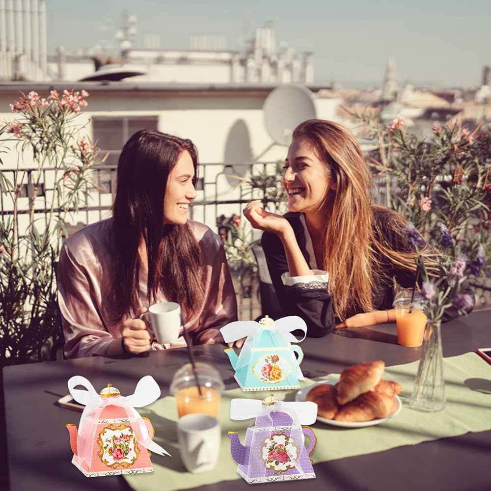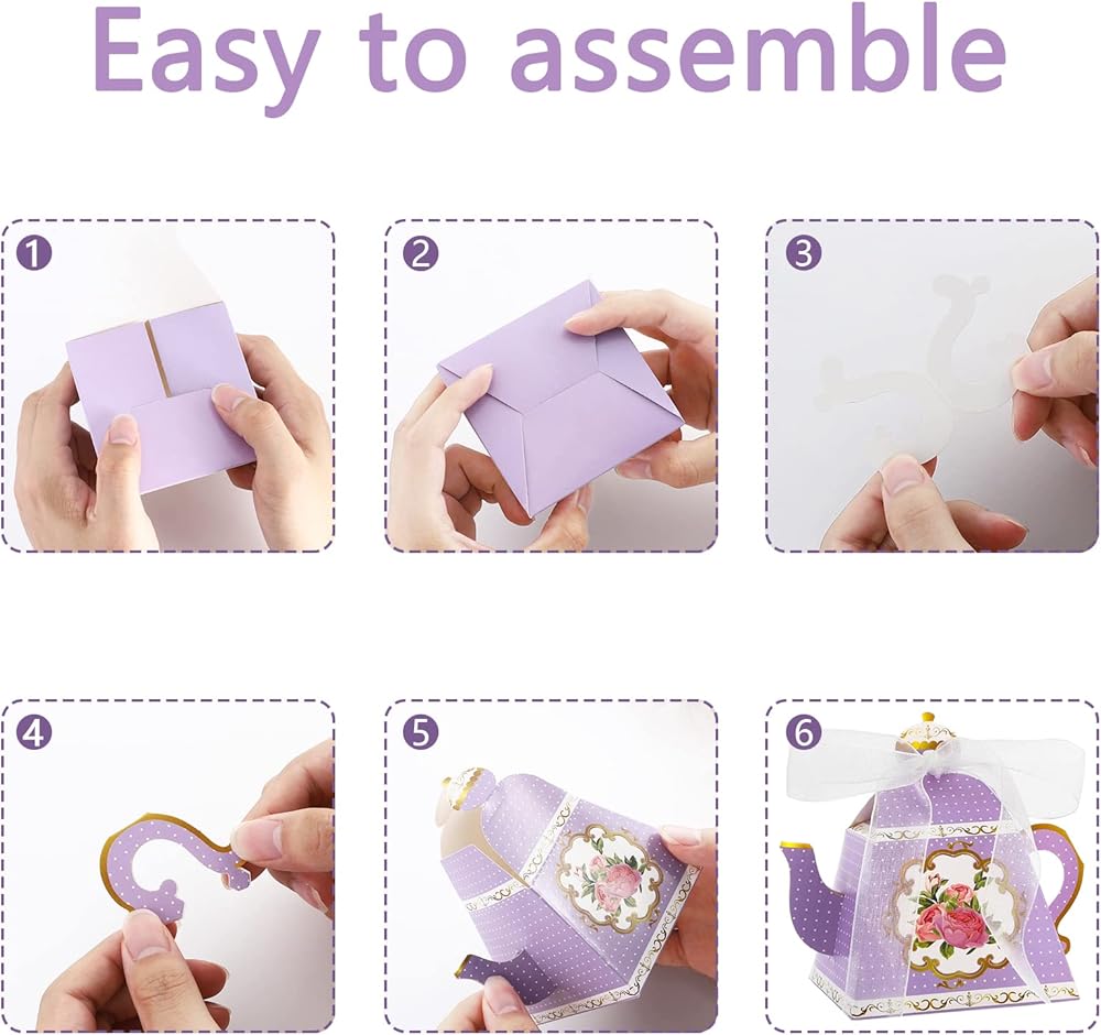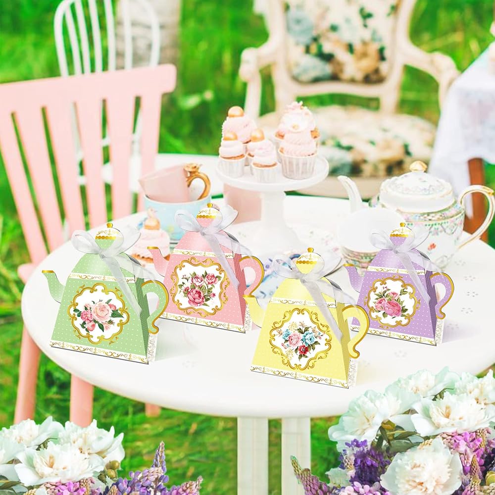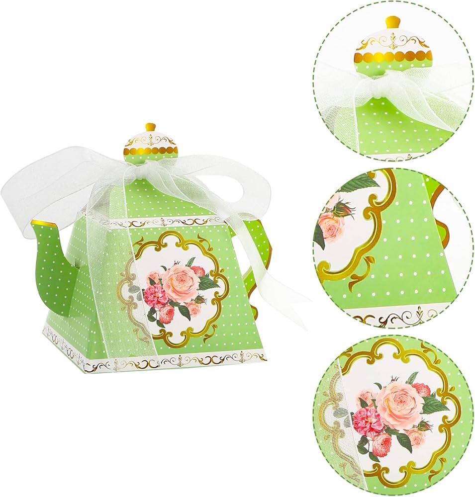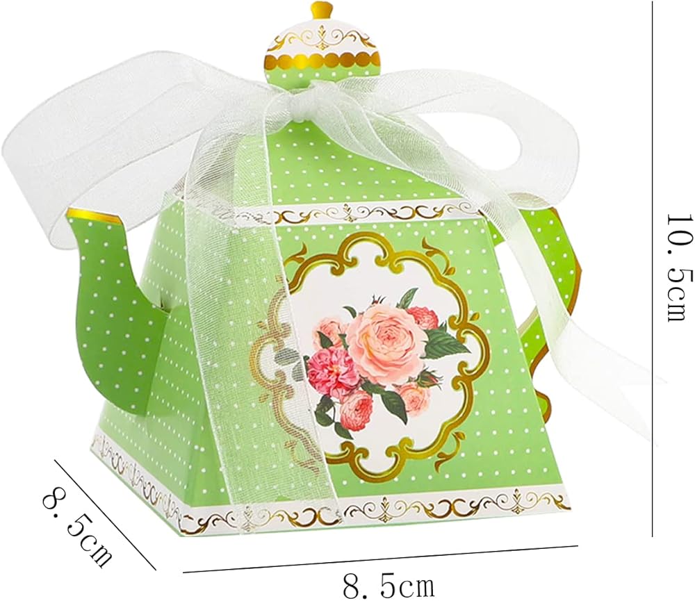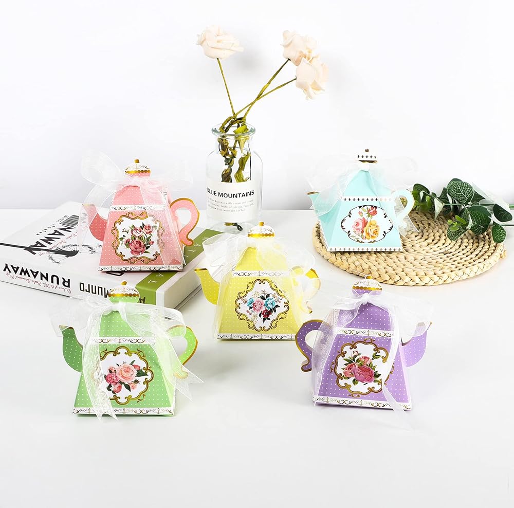 ما تحصل عليه: تحتوي العبوة على 30 قطعة من الصناديق على شكل إبريق الشاي مع 5 ألوان و30 شريط أبيض. أنماط رائعة على الجانبين، مع تصميمات زهور رائعة وأنيقة للغاية.