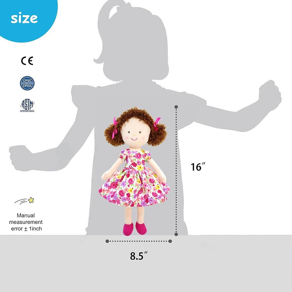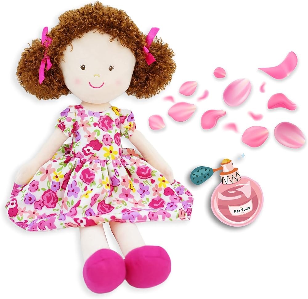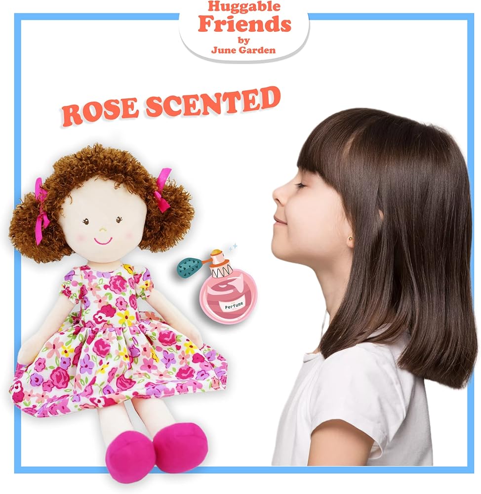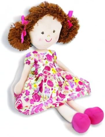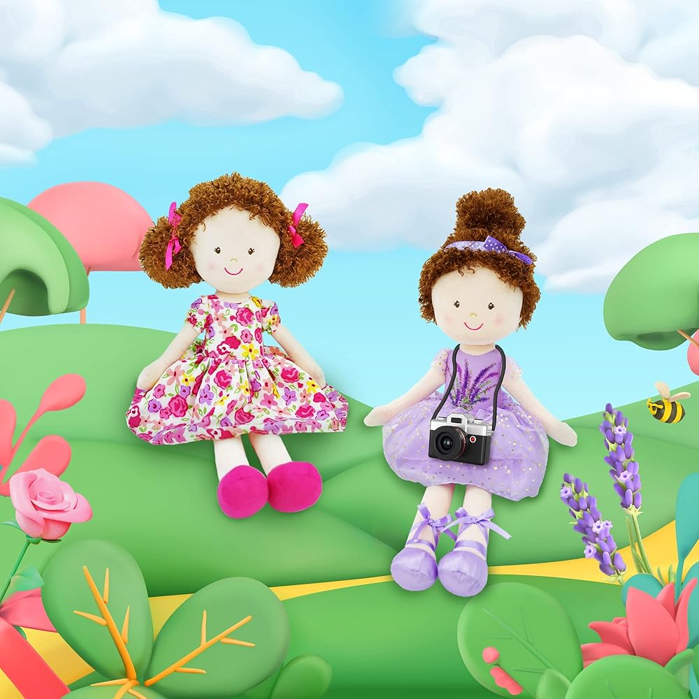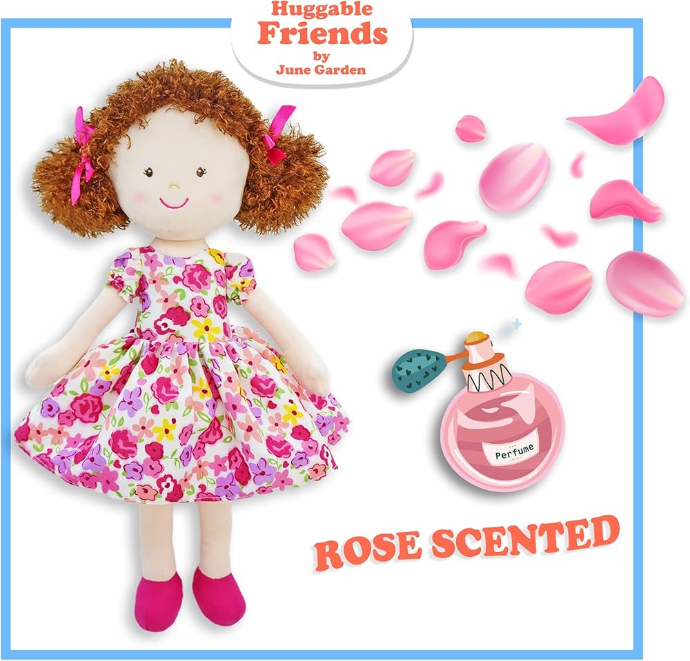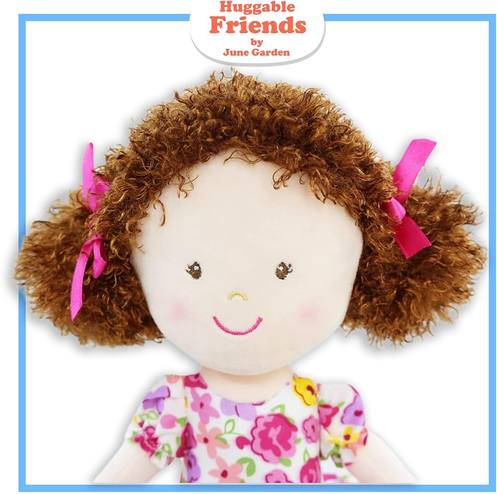 رفيق محشو رائع: تم تصميم دمية إيفيت المعطرة باللافندر لتكون الرفيق المثالي لطفلتك الصغيرة طوال طفولتها المبكرة. تتميز إيفيت الناعمة والمريحة بشعر بني مجعد جميل مزين بربطة شعر أرجوانية ساحرة، وعيون مطرزة، وابتسامة جميلة، وجاهزة دائمًا لعناق دافئ.