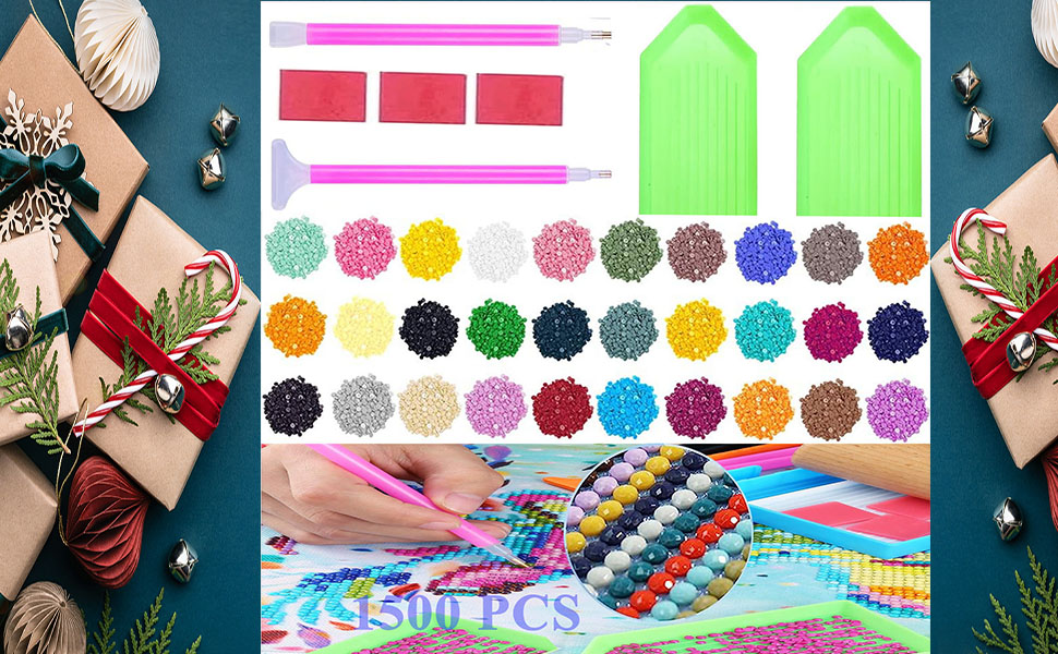 【مجموعة أدوات الرسم الماسي】تحتوي مجموعات ملحقات الرسم الماسي على نمطين مختلفين من أقلام الماس و3 صلصال صمغ، و1500 خرزة دائرية ماسية وصينيتين. كل قلم صمغ له استخدامات مختلفة لمستلزماتك المختلفة. 3 صلصال غراء و1500 خرزة دائرية ماسية كافية للحرف اليدوية الخاصة بك والتطريز الماسي. 30 لونًا مختلفًا للخرز الملون الماسي الذي يلبي رمز اللون القياسي دي ام سي.