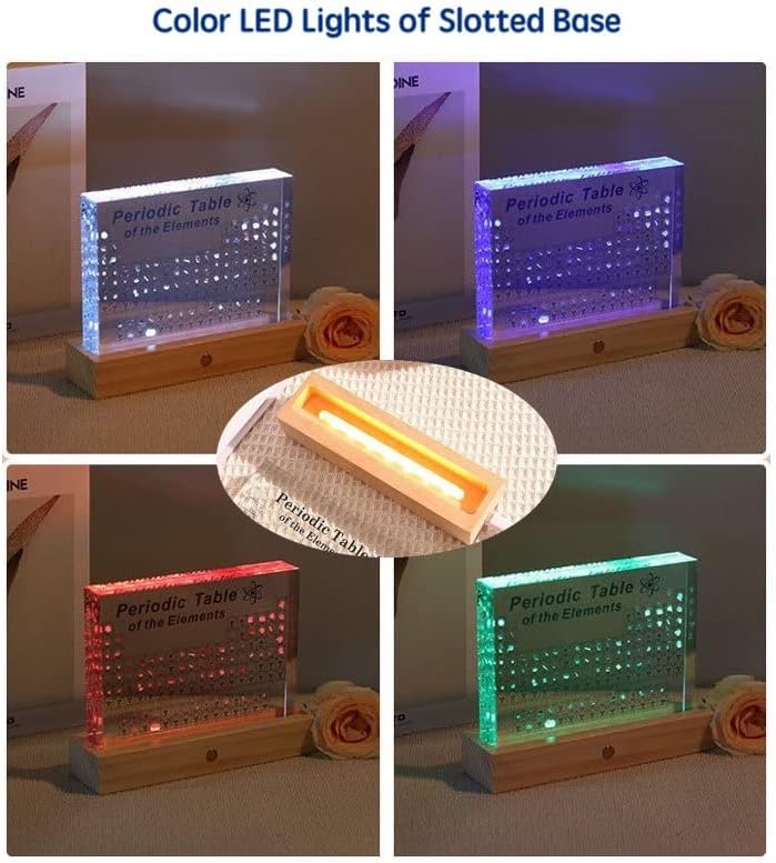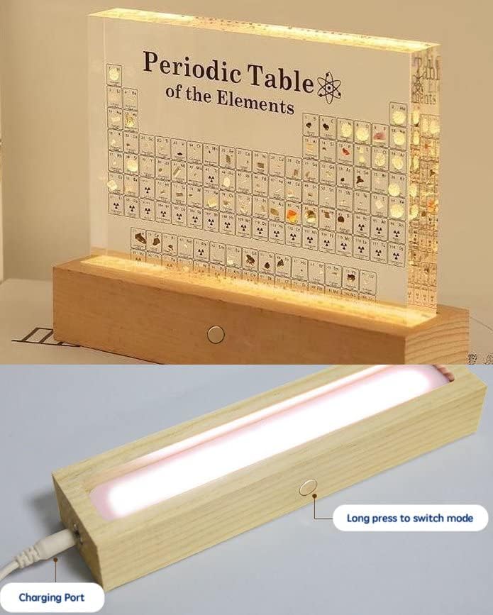 جدول دوري من فرانك مودي بعناصر حقيقية، عرض مخطط دوري اكريليك كريستالي مقلد مع اضواء LED ملونة وقاعدة لاسلكية، 83 عينة حقيقية، مخطط دوري 5.9 × 4.5 × 0.8 انش