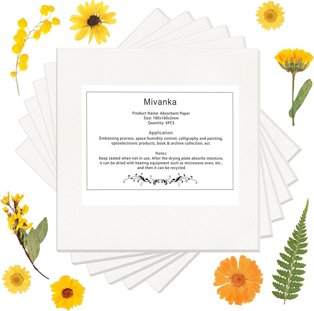 تشمل العبوة: 6 أوراق من ورق نشاف الزهور مصنوعة من ورق نشاف من الألياف الطبيعية للضغط على الزهور، ناعمة وسميكة، وليست هشة، وسهلة امتصاص الماء أو الزيت.