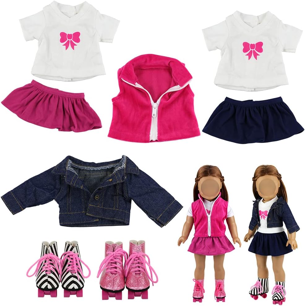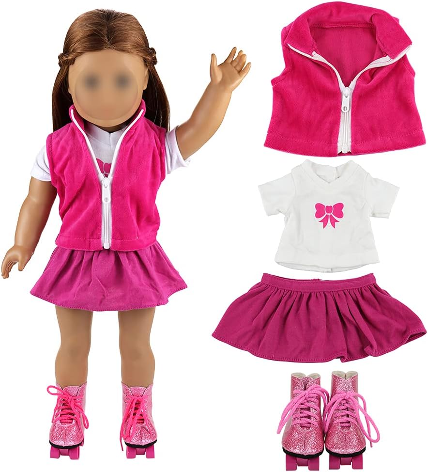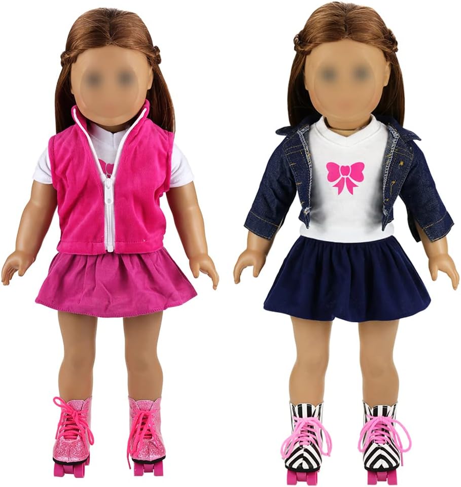مجموعة ملابس دمى وزوجين من أحذية التزلج على الجليد من باروا، أطقم أزياء خريفية أنيقة متوافقة مع هدية دمية مقاس 45.72 سم