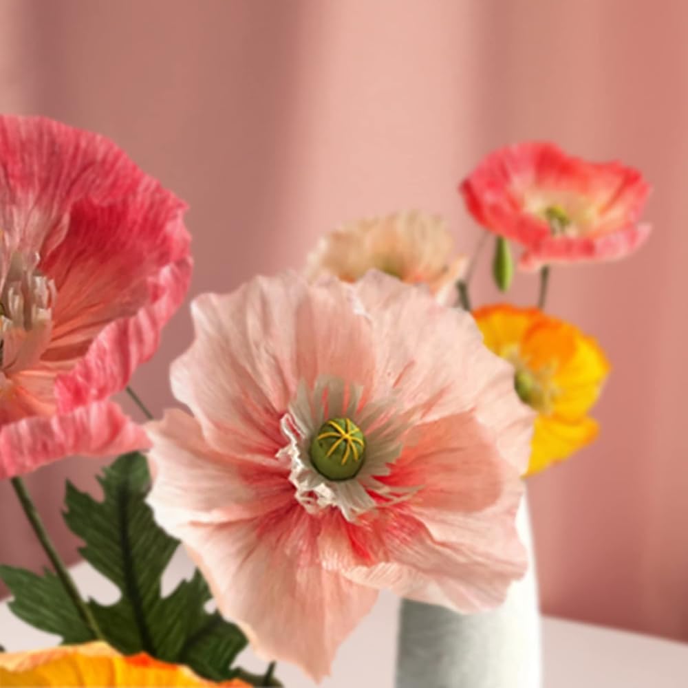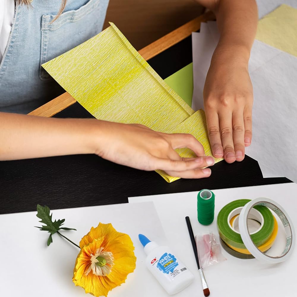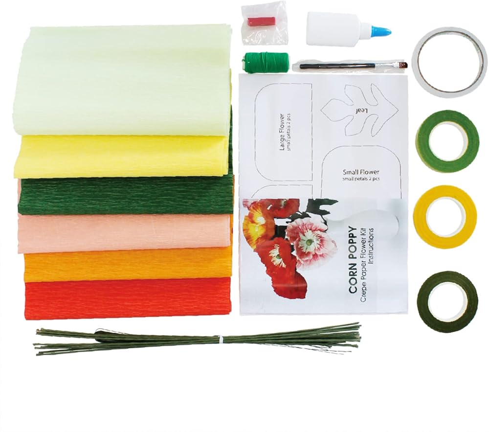 مجموعة زهور من ورق الكريب مع 6 لفات، 12 قطعة من مواد الزهور مع بكرات ورقية، سلك حديدي، شريط زهور لحفلات اعياد الميلاد والمهرجانات وديكور المنزل، هدية زهور يدوية الصنع