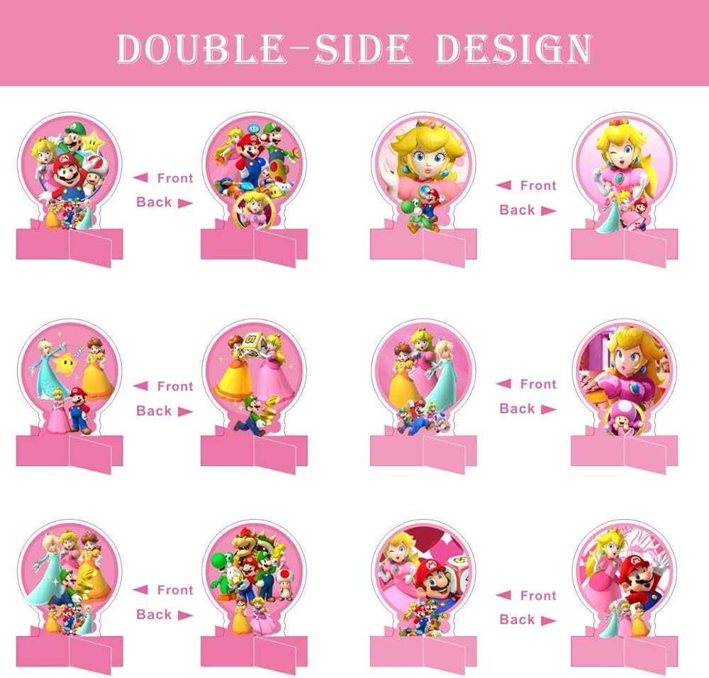 2. جودة عالية: يتكون ديكور طاولة الأميرة الخوخ من جزأين، القاعدة المتقاطعة مصنوعة من ورق المناديل والجزء العلوي مصنوع من ورق مقوى عالي الجودة بنمط رائع ونابض بالحياة وألوان زاهية عليها، متينة وقوية.