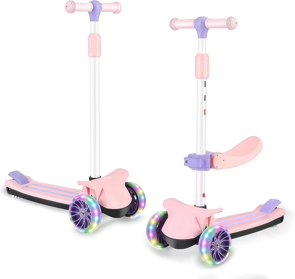 تصميم 2 في 1 >> سكوتر ثلاثي العجلات مع مقعد قابل للتعديل يمكن أن ينزلق أو يركب. عندما يكون المقعد لأسفل، يمكن للأطفال الجلوس بأمان وراحة. وعندما يكبرون، ما عليك سوى إزالة المقعد وضبط المقود حتى يتمكن الأطفال من الانطلاق بجرأة، وسينمو السكوتر ثلاثي العجلات للأطفال مع أطفالك مما يسمح لهم بالاستمتاع بالسكوتر 2 في 1 لفترة أطول.