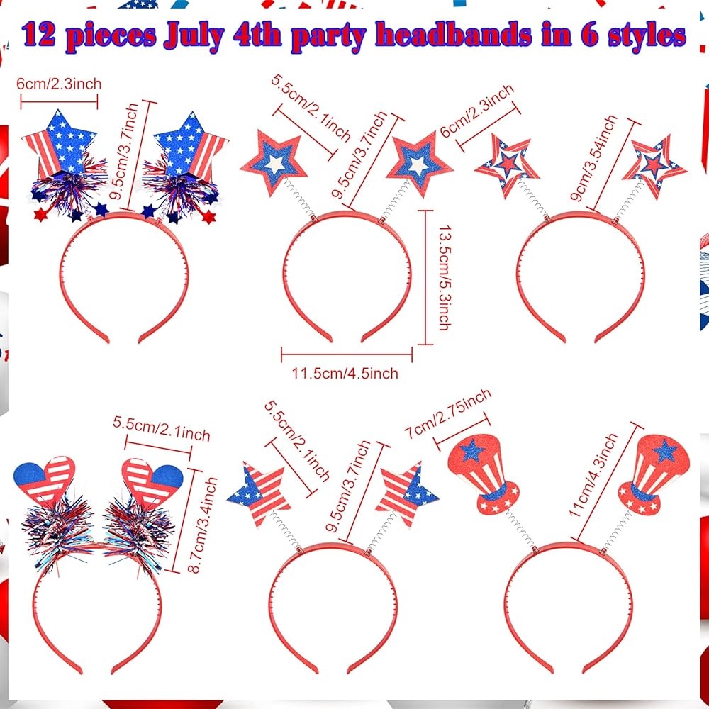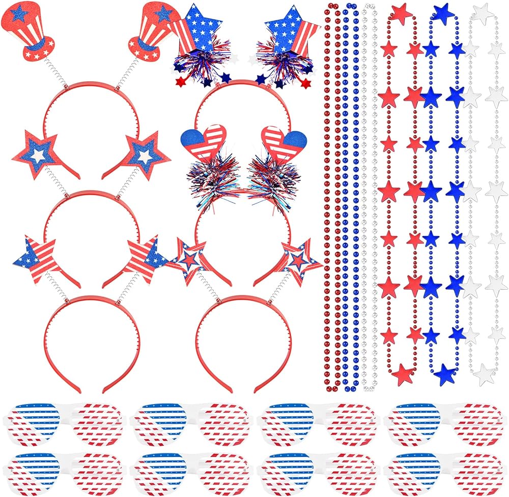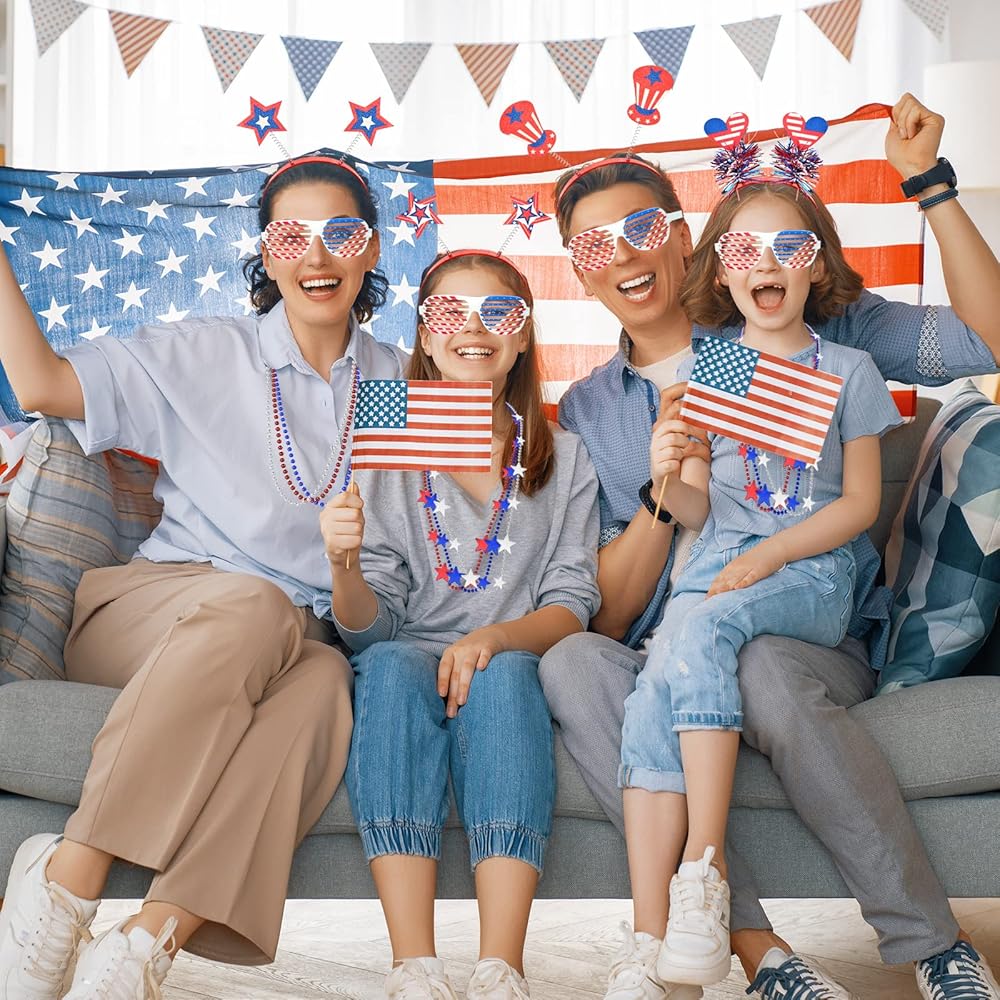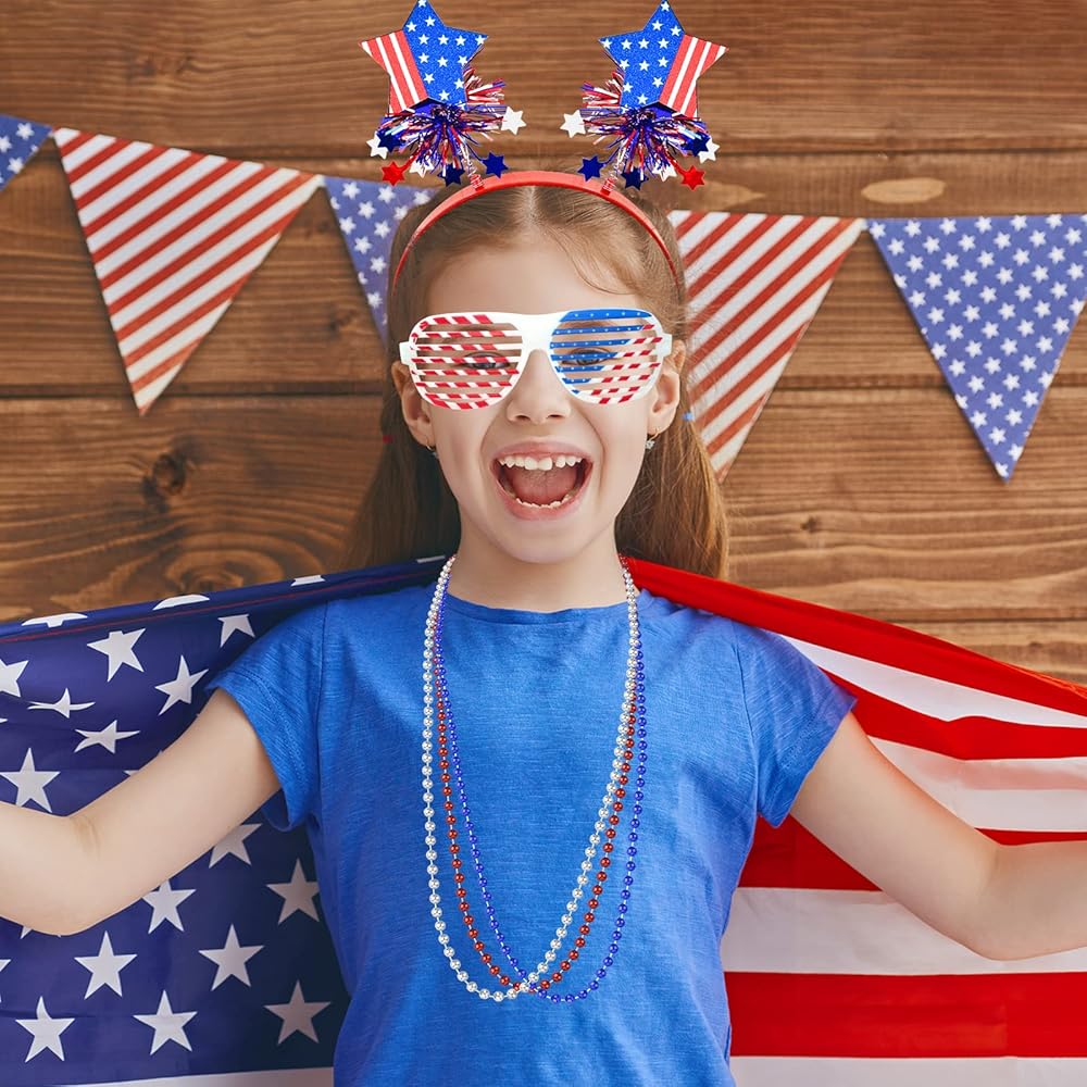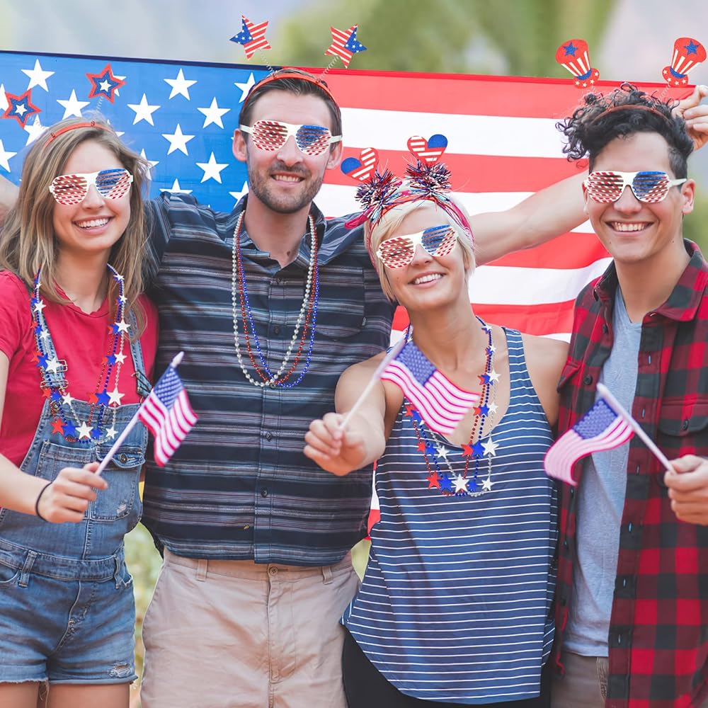 36 قطعة من عصابات الرأس في الرابع من يوليو، مجموعة من عصابة الرأس الوطنية مع نظارات العلم الأمريكي، قلادات على شكل نجمة، إكسسوارات الحفلات العسكرية، عصابة رأس أمريكية، إكسسوارات تحت عنوان أمريكا لحفلة يوم الاستقلال