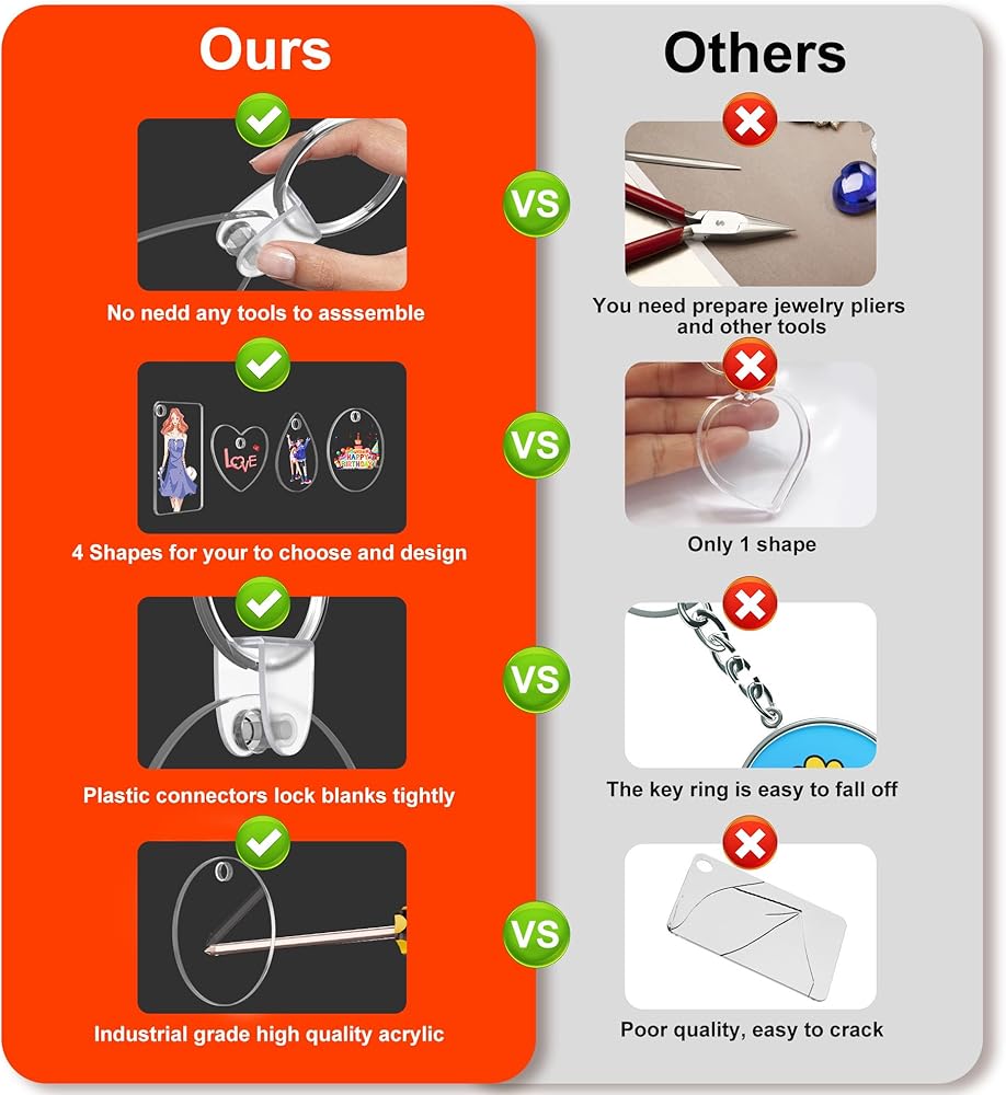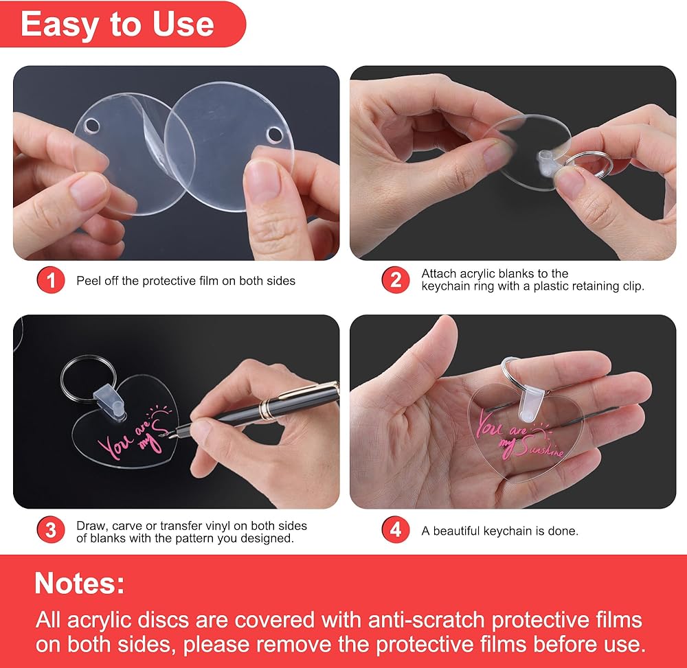 【سلاسل مفاتيح فارغة عالية الجودة】مصنوعة من مادة أكريليك عالية الجودة ذات قوة صناعية، سلاسل المفاتيح الأكريليك الفارغة ذات الوجهين هذه شفافة وخفيفة الوزن وقوية ومتينة، مما يضمن متانة رائعة ولا مزيد من القلق بشأن أي نوع من التشقق عند العمل معها.