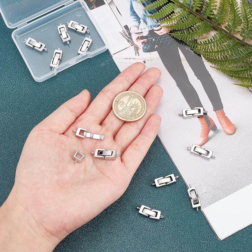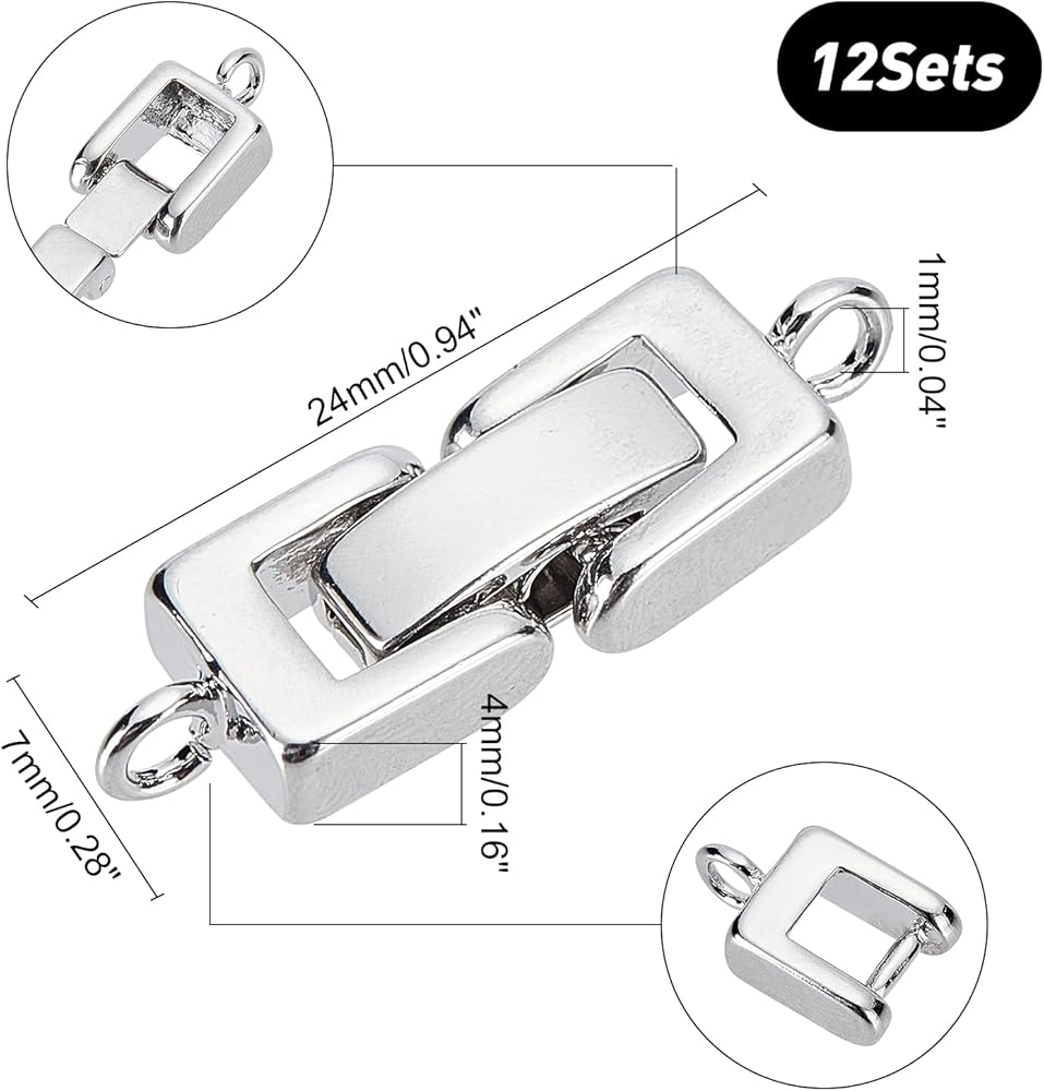 SUPERFINDINGS 12 قطعة نحاسية قابلة للطي على المشابك مقاس 0.9 × 0.3 بوصة من البلاتين للمجوهرات، مجموعة مشبك تمديد صغير قابل للطي مع فتحة لموسع المجوهرات وقلادة السوار، الفتحة: 1 مم
