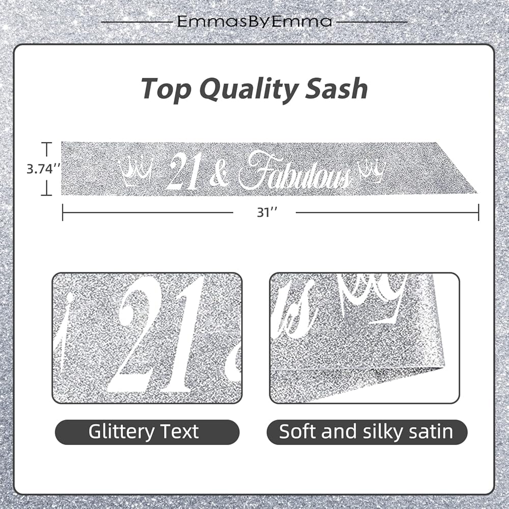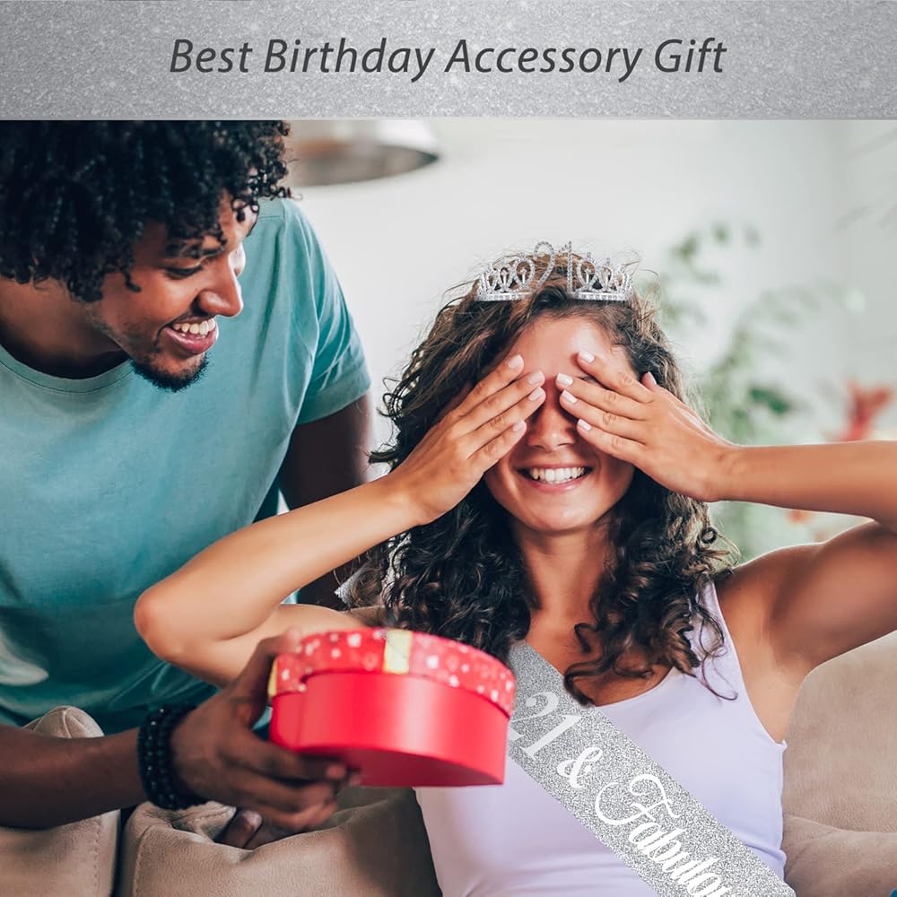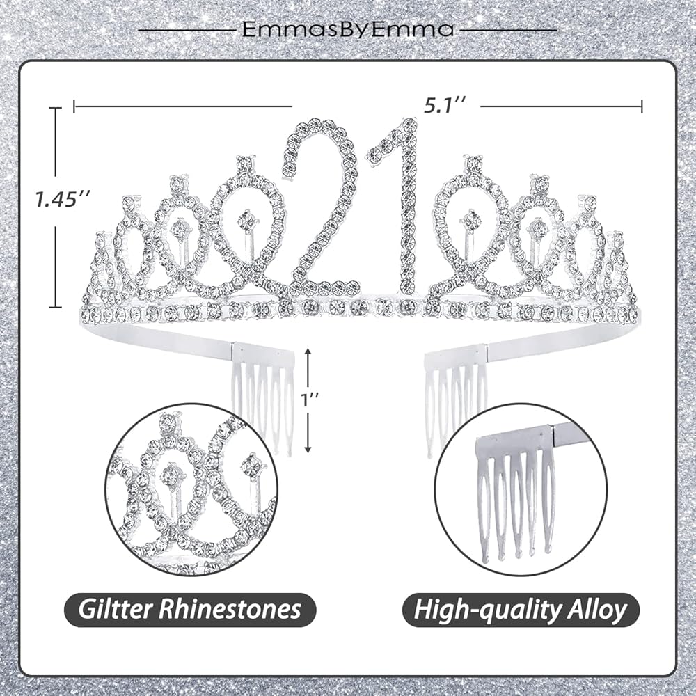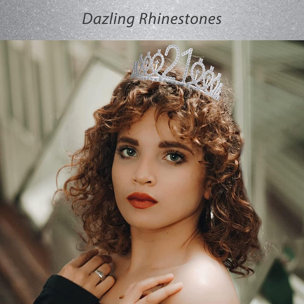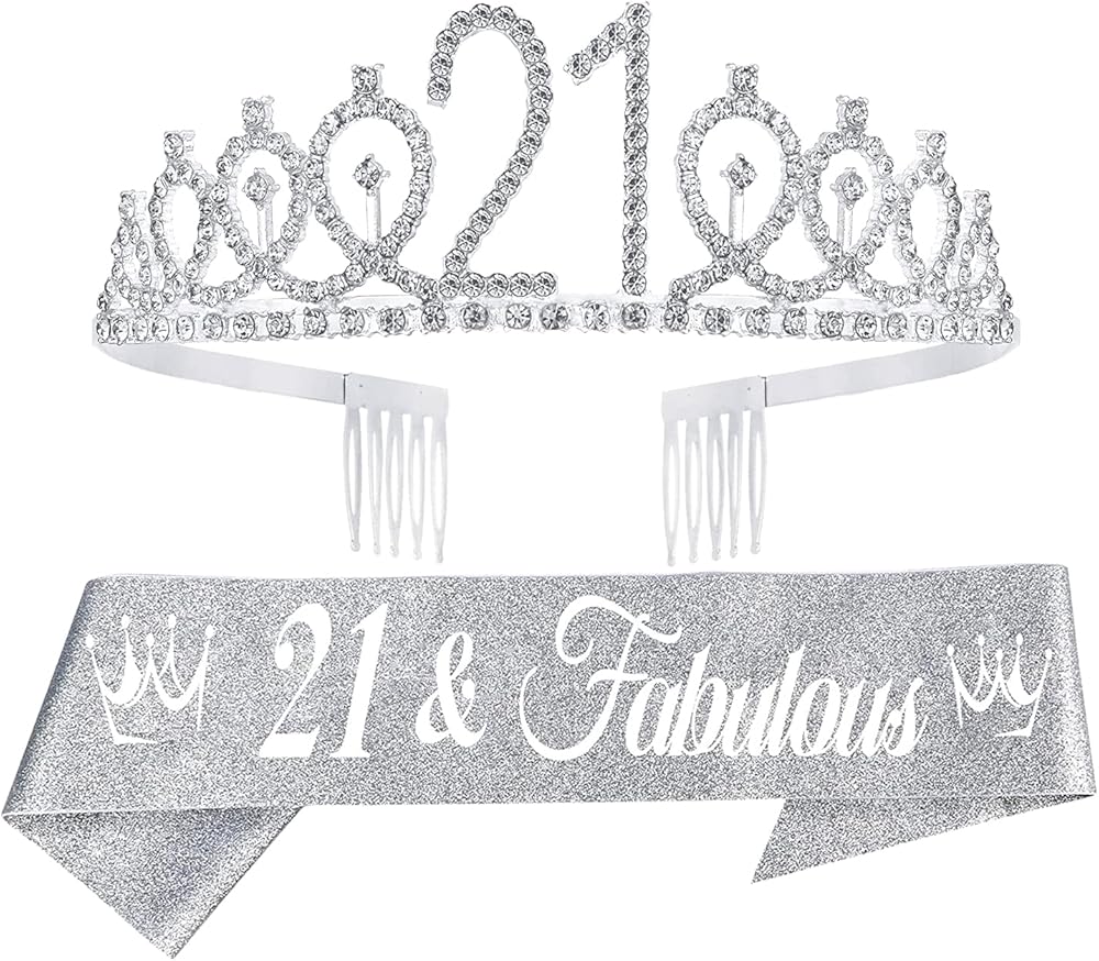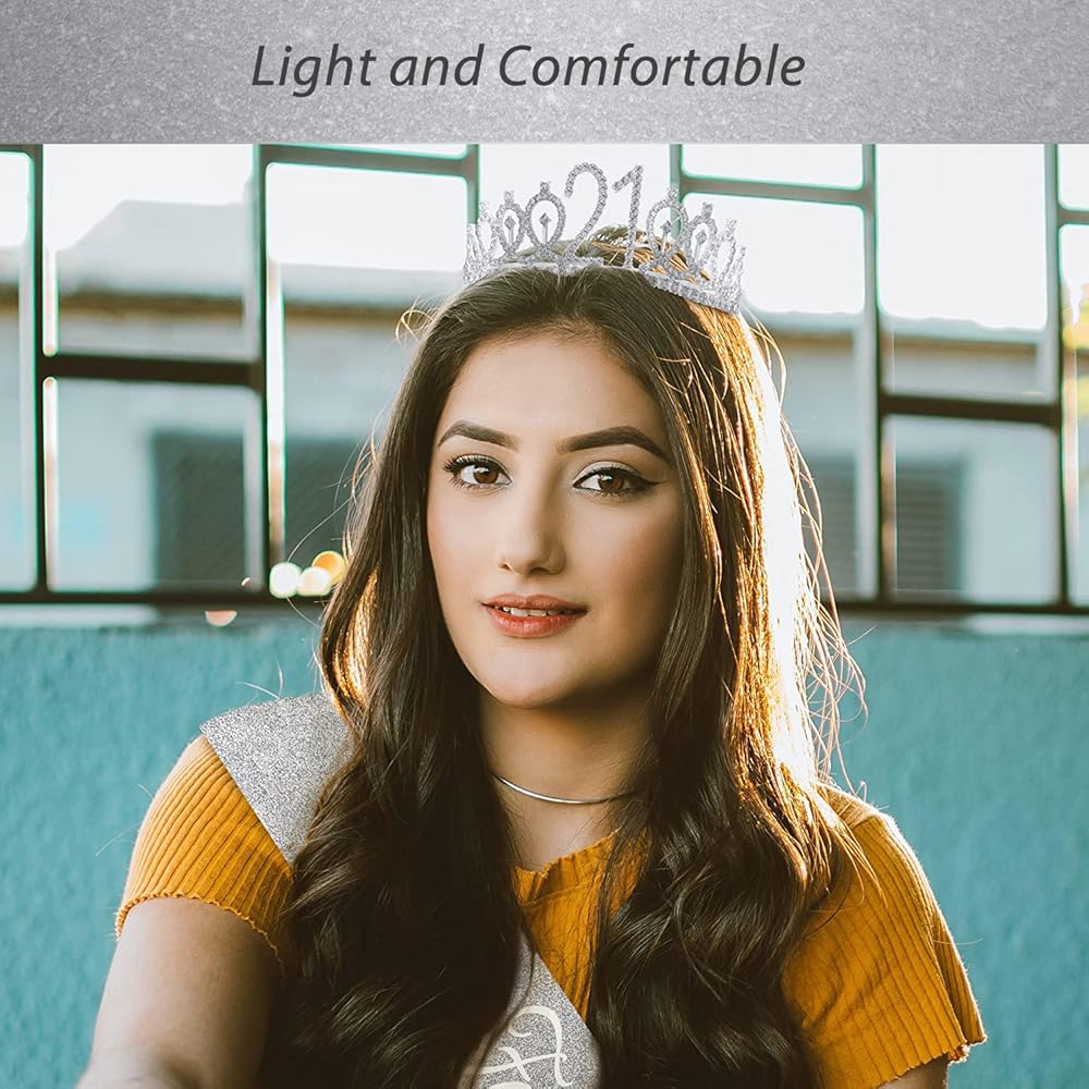 زينة عيد الميلاد الحادي والعشرين لها: تاج واحد فضي لعيد الميلاد الحادي والعشرين مطبوع عليه عبارة "21" ووشاح عيد الميلاد الحادي والعشرين مع "21 ورائع". تاج ووشاح لعيد الميلاد الحادي والعشرين مناسب لهدايا عيد الميلاد الحادي والعشرين للنساء. كل امرأة 21 هي أميرة، ستلبس نفسها مع تاج عيد الميلاد الحادي والعشرين ووشاح عيد الميلاد الحادي والعشرين في حفلة عيد الميلاد الحادي والعشرين، لذا فإن وشاح وتاج عيد الميلاد الحادي والعشرين مناسبان جدًا لهدايا عيد الميلاد الحادي والعشرين للنساء، وزينة عيد الميلاد الحادي والعشرين للنساء