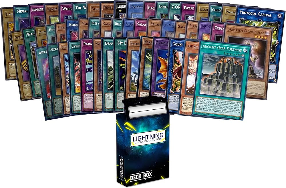 ULTIMATE YUGIOH CARDS: Unlock the heart of the cards by receiving 50 random yugioh Cards. Each card could come from any Yugioh era including but not limited to Spell Ruler, Duel Overload, Duelist Alliance, Invasion Of Chaos, Breakers Of Shadow, The Secret Forces, Phantom Darkness , Raging Tempest, Duel Devastator, Lightning Overdrive, Ancient Guardians, Ghosts From the Past, and many others ALL CARDS 100% REAL YUGIOH CARDS: With years of experience, we can tell the difference between fake Yugioh cards and real Yugioh TCG cards. We check all our Yugioh trading cards and authenticate them before putting them in any of our Yugioh cards pack. Plus, you will receive a Lightning Card Collection Box with your Yugioh pack! Don't miss out on our exclusive Yugioh booster pack that are full of Ultra rare Yugioh cards and will boost up all Yugioh decks MOST COMPLETE YUGIOH CARDS ON THE MARKET: You are sure to find strong Yugioh playing cards and Yugioh holo cards for your Yugioh decks! You can find hidden gems like Yugioh first edition cards, Yugioh rare cards, yugioh cards, old Yugioh cards, Yugioh spell cards, and Yugioh trap cards, and other good Yugioh cards! This is one of the the most complete Yugioh card packs on the market, which is why it's one of the best Yugioh packs on the market! GREAT YUGIOH GIFTS FOR BOYS AND GIRLS: This Yugioh starter deck is the perfect Yugioh gift for newcomers to the Yugioh card game! This Yugioh starter kit even comes with holo Yugioh cards making it great for experienced collectors and players as well! Our kit comes with many different kinds of Yugioh rare cards, Yugioh field cards, Yugioh link monsters, Yugioh Monster cards, Yugioh Fusion cards, Yugioh xyz cards, and more! It is a great way to get newcomers into the Yugioh