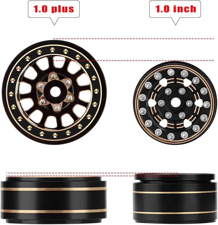 • 【Compatibility】1.0 Plus beadlock wheels compatible with TRX4M 1/24 Axial SCX24 Bronco/JLU/Deadbolt/Gladiator FMS FCX24 (Compatible with 1.0" tires).