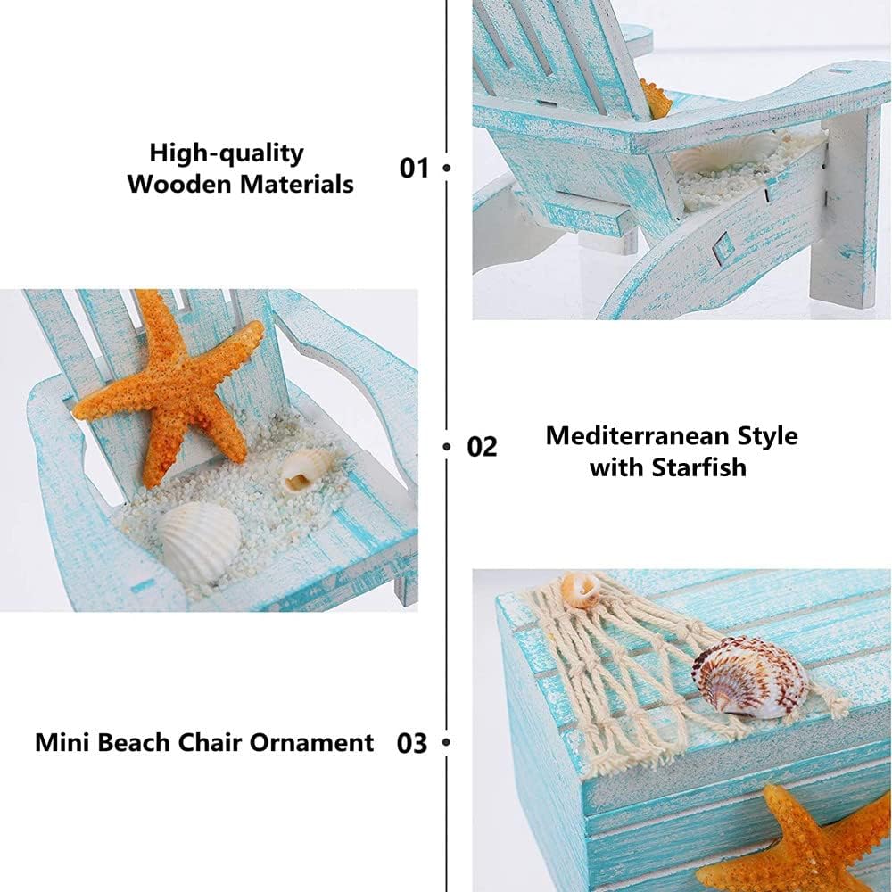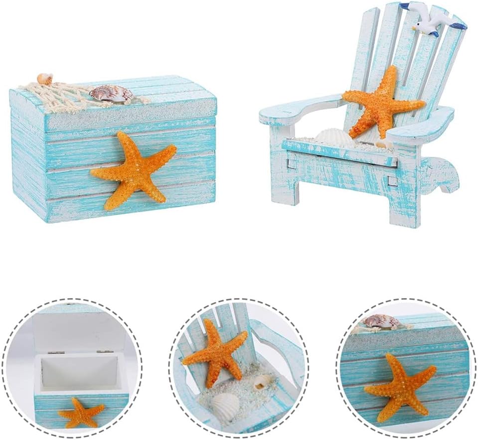 هيبي هوم قطعتان من كرسي الشاطئ بنمط البحر الأبيض المتوسط صندوق خشبي صغير لتزيين الاثاث نجم البحر للمنزل والمكتب وبيت الدمى