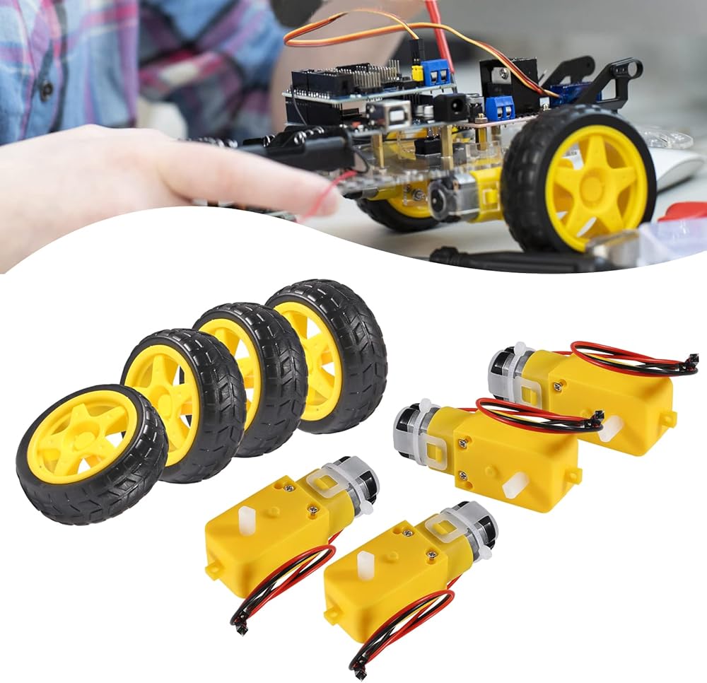 4 Sets TT Motor DC 3-6V Gearbox Motor Dual Shaft 200RPM Ratio 1:48 Motor with Tire Wheel Kit