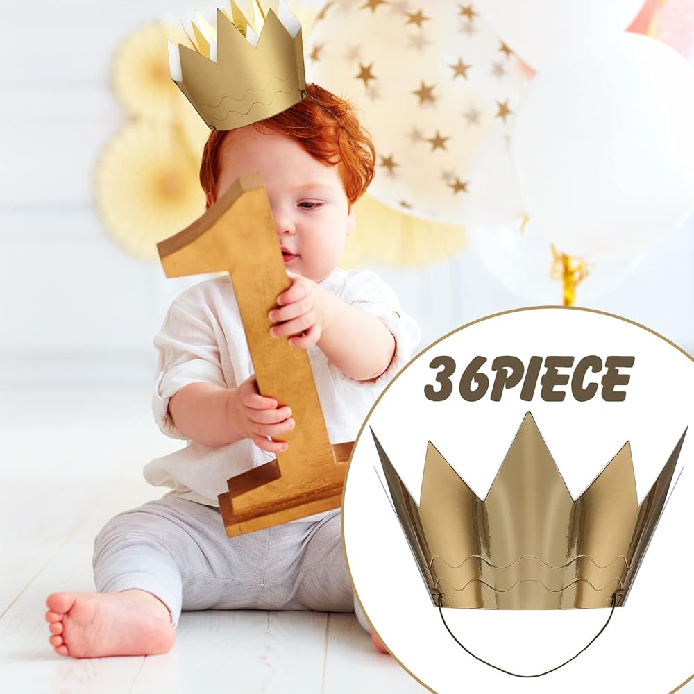 لاومي 36 قطعة من التيجان الصغيرة للاطفال والكبار، تاج ورقي للحفلات باللون الذهبي مع حزام مطاطي لعيد الميلاد وحفلات استقبال المولود وديكورات الحفلات بطابع الاميرة الملك