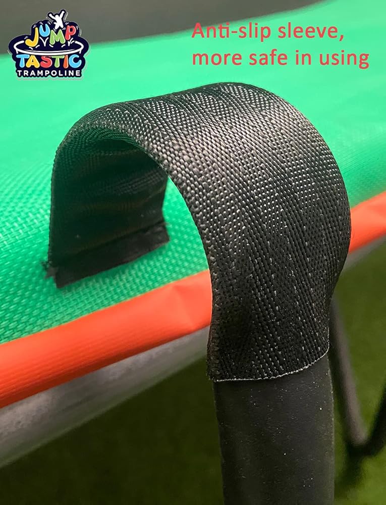 يسمح المنتج للأطفال بالصعود والخروج من الترامبولين بأمان دون قلق. خطوتين عريضتين مضادتين للانزلاق تجعل تسلق الطفل آمنًا وسهلاً. أنابيب مجلفنة مقاومة للصدأ ومرشوشة بالبلاستيك يمكنها دعم 220 باوند. 1. سلم بدرجتين مع درجات مقاومة للانزلاق هو أسهل سلم للأطفال الصغار لتسلقه على الترامبولين. 2. يمكن استخدام السلم على أي ترامبولين من خلال تعليقه بسهولة على أنبوب الإطار. 3. يمكن للدرجات المسطحة المزخرفة أن تمنع الانزلاق بشكل فعال أثناء التسلق على الترامبولين.