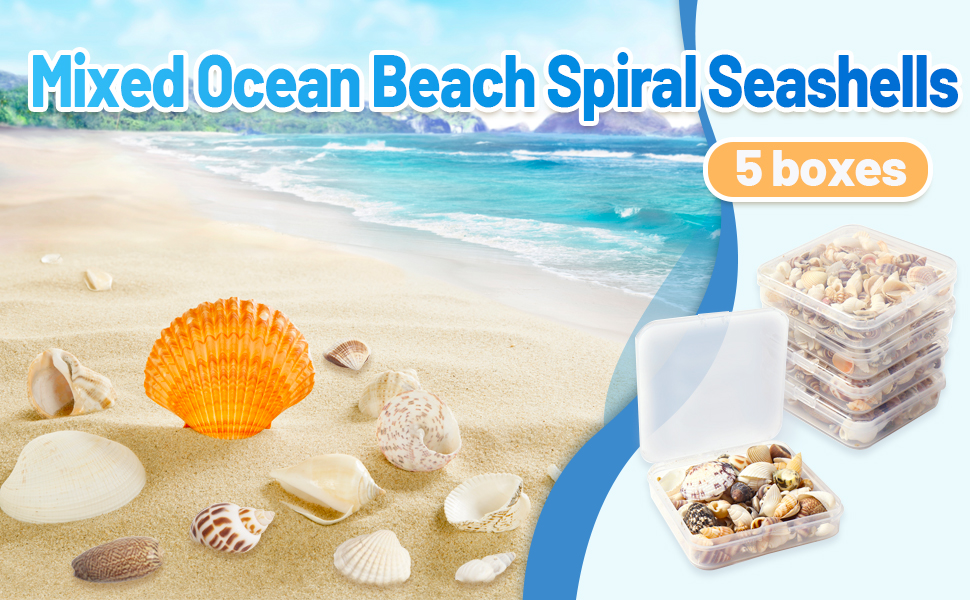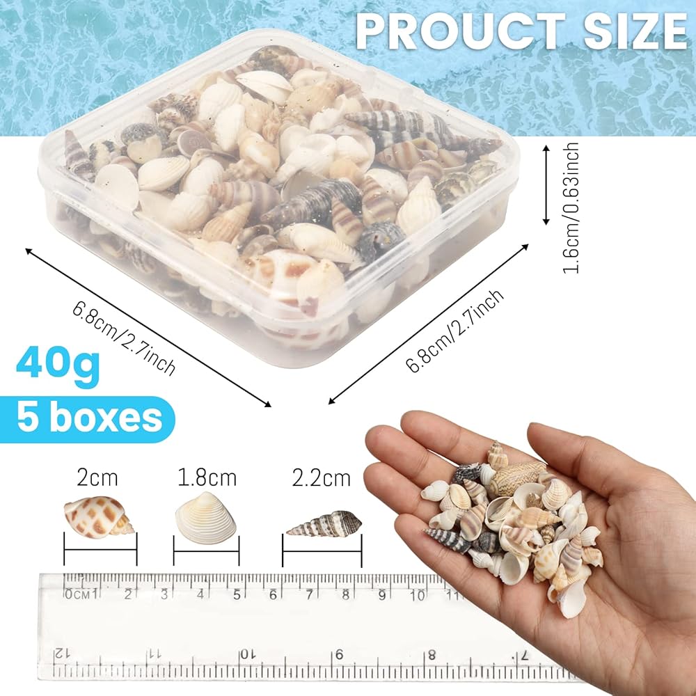 تحتوي العبوة على 5 صناديق من الأصداف البحرية الصغيرة، كل منها يزن 40 غرام. تأتي صدف البحر في صندوق لا يتلف بسهولة