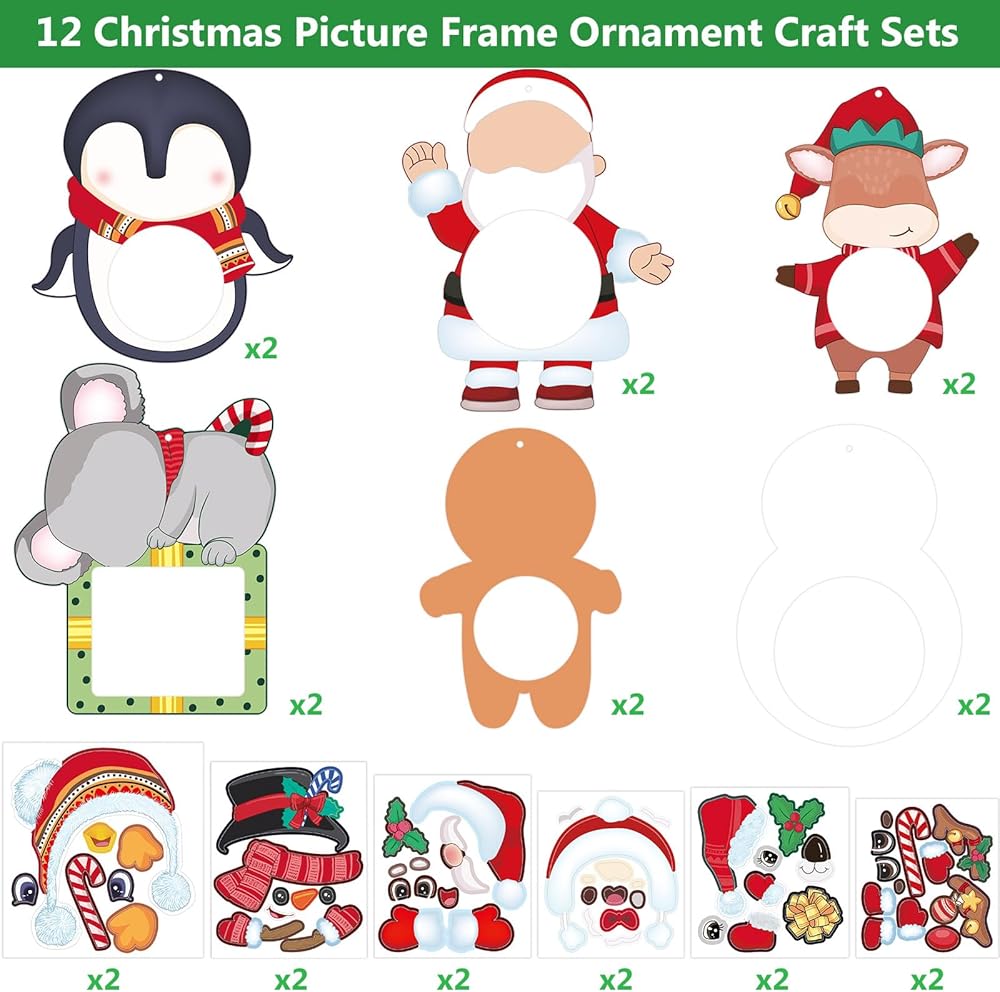 فانسي لاند عيد الميلاد إطار الصورة زخرفة الحرفية للأطفال رغوة DIY عيد الميلاد شخصية إطار الصورة الحرف اليدوية للأنشطة الصفية حزب صالح 12 حزمة
