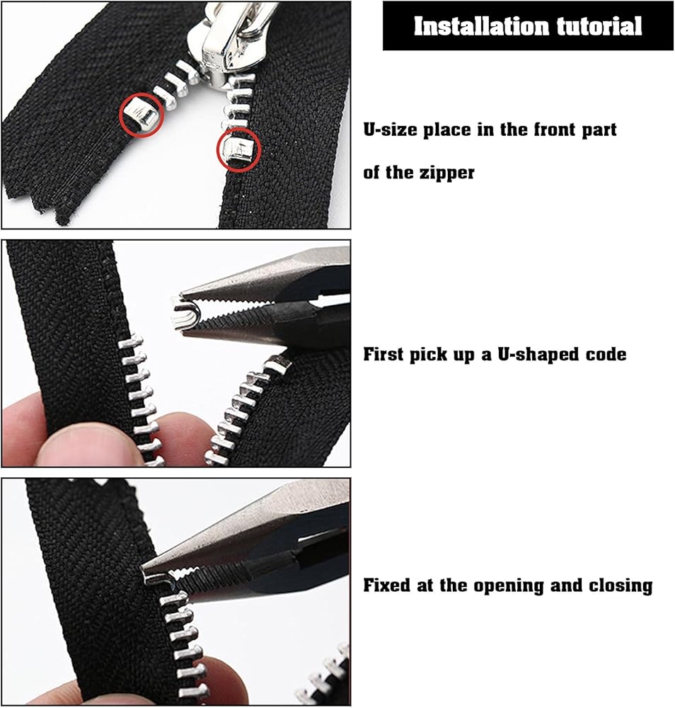 -Note that the 5# top-stop U-clip is fit for 5# zipper, and the 8# top-stop U-clip is fit for 8# zipper, pay attention to your zipper size.