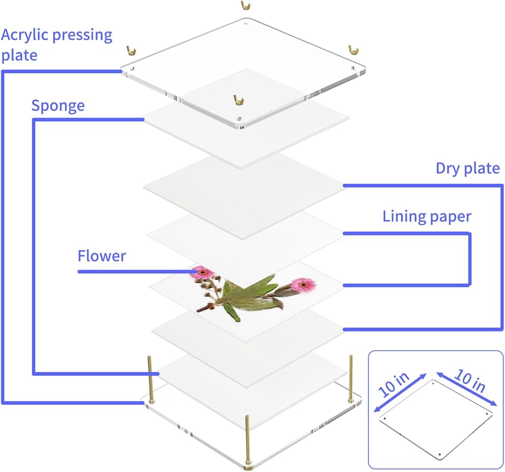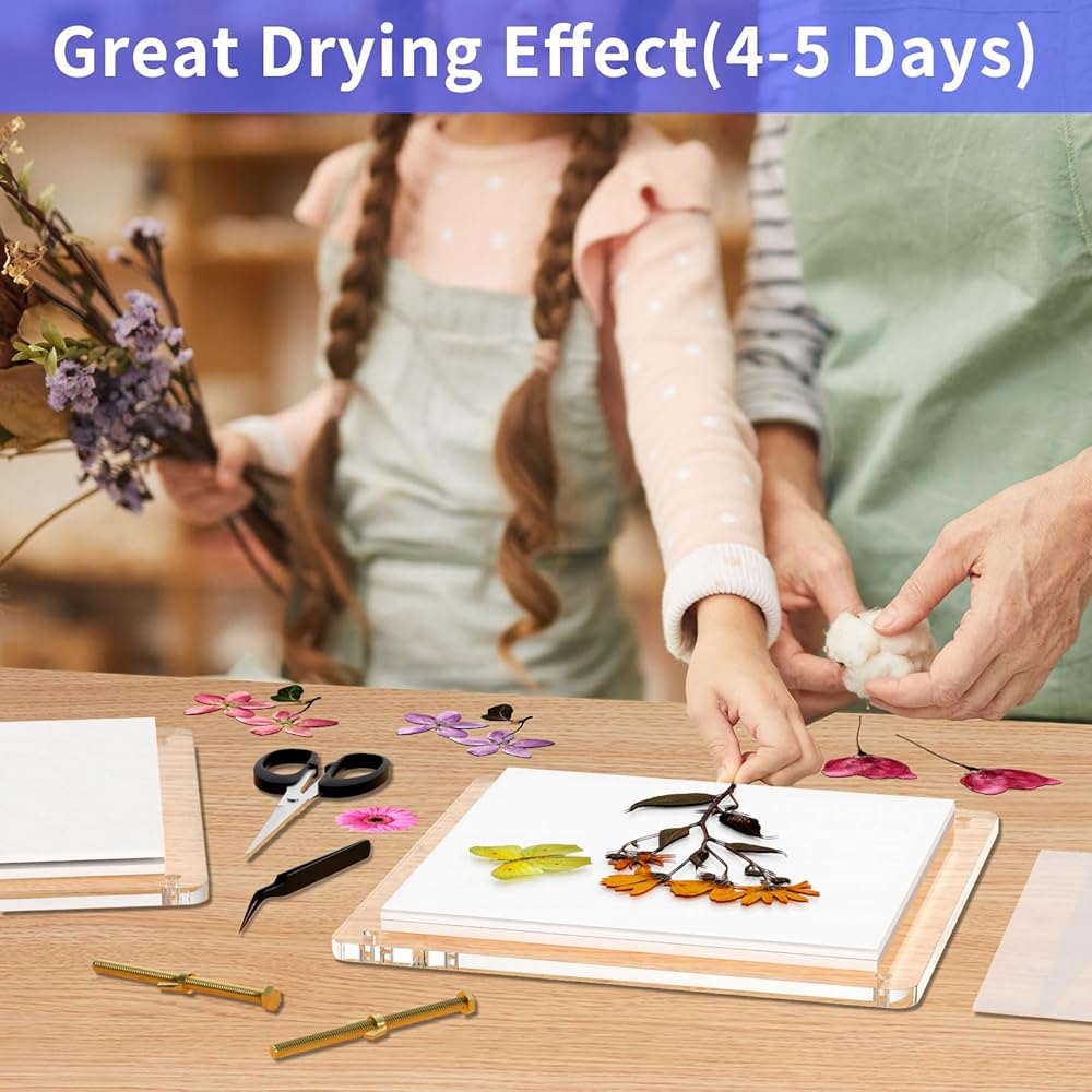 تايتي مجموعة ضغط زهور احترافية كبيرة من الاكريليك مكونة من 6 طبقات للكبار، مجموعة حفظ النباتات سريعة الجفاف مع شنطة تخزين، هدية للمبتدئين ومحبي الحرف اليدوية 10×10 انش